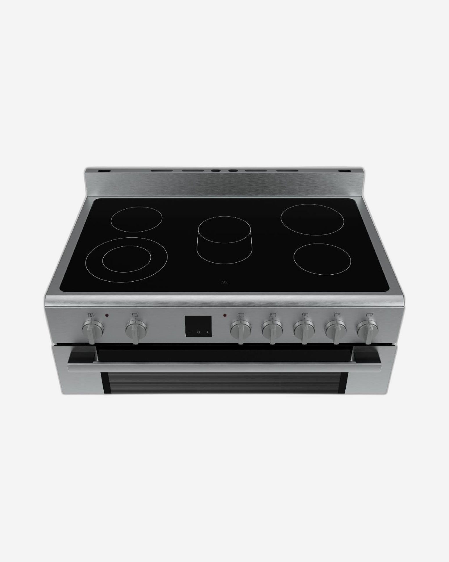 The modern range cooker with electric oven and glass ceramic cooktop.