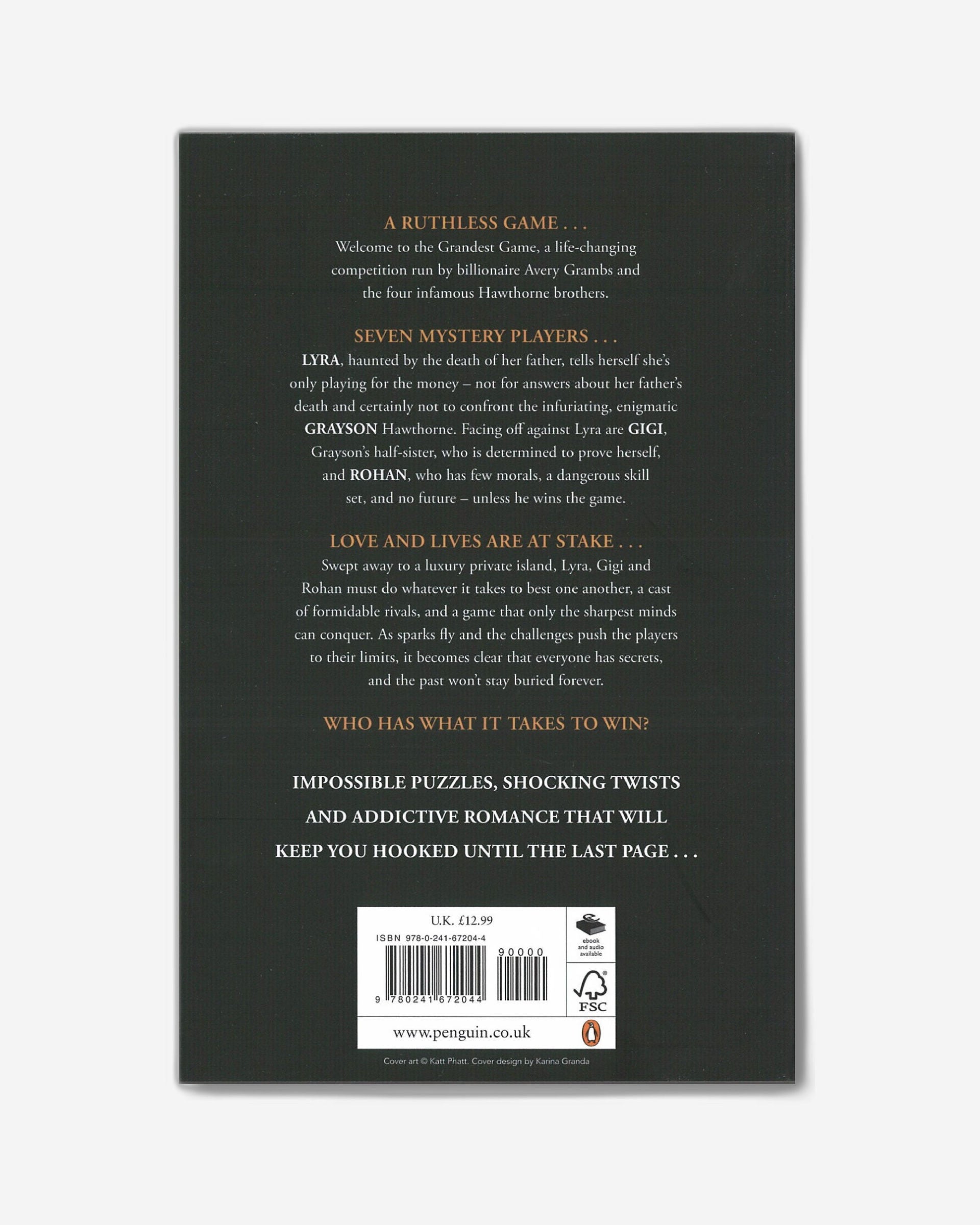 Some of the players are in it for the money. Some for power. Some for reasons all their own. Every single one of them has secrets. Amidst it all is Grayson Hawthorne, tasked with a vital role in this year’s game. But as tensions rise and the mind-bending challenges push the players to their limits—physically, mentally, and emotionally—it soon becomes clear that not everyone is playing by the rules.