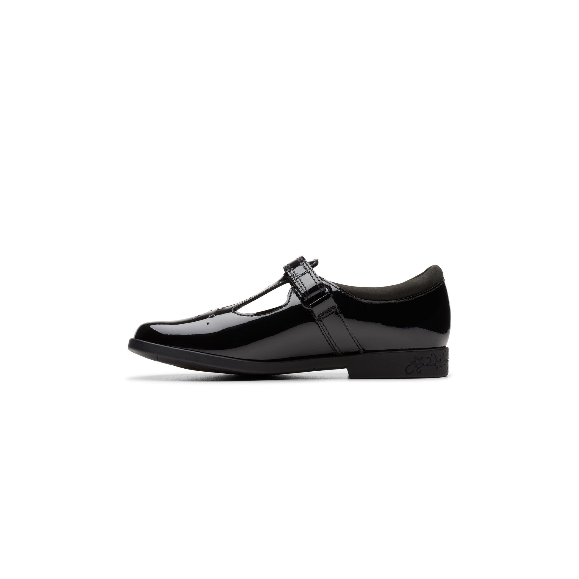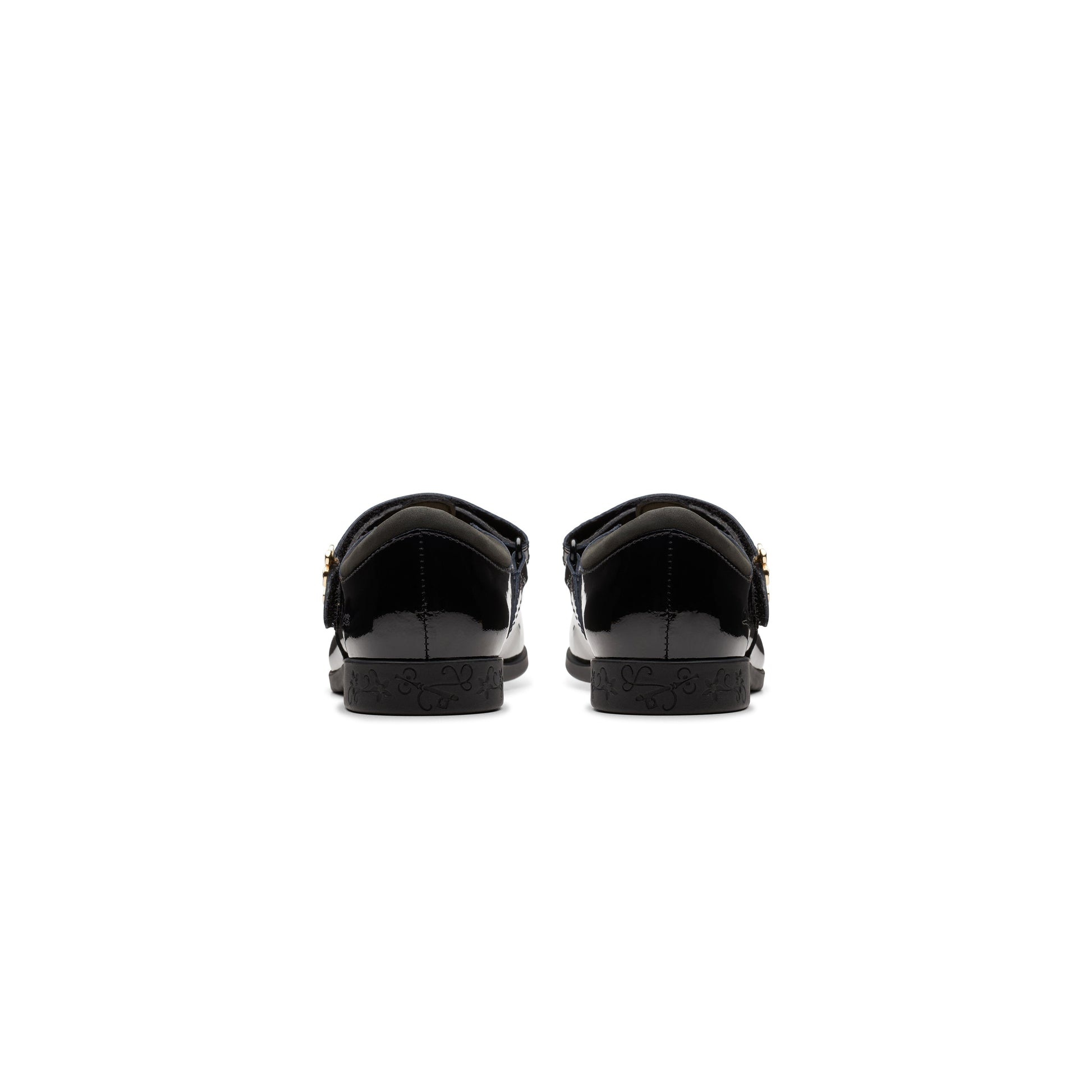 Clarks Girls Lock Shine Kid. Black Patent (Wide Fit)