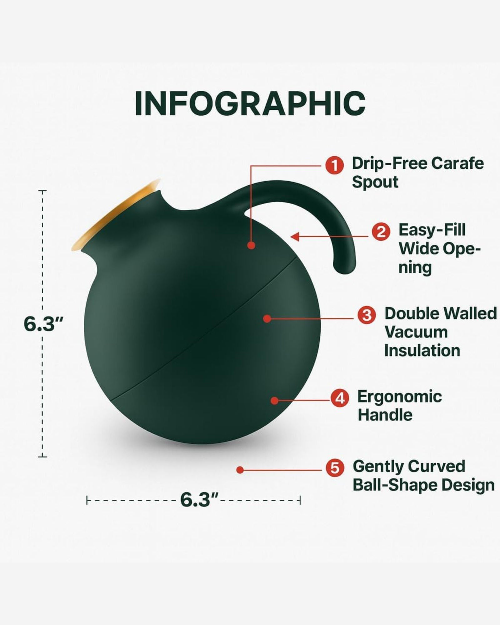 •Globe?style design that’s both sculptural and functional; well?balanced for easy pouring.