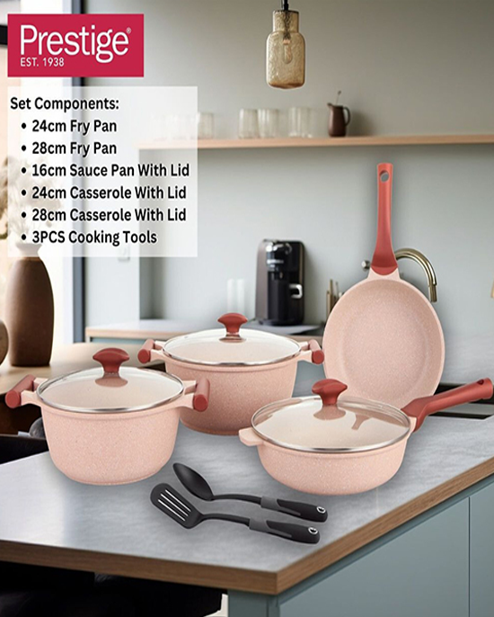 •Prestige Essentials 10 pc set Blue Granite Non-Stick Cast Aluminium