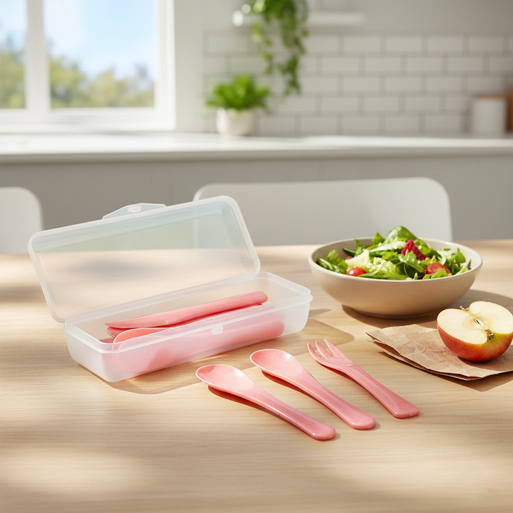 •Portable Storage Box Included – Keeps cutlery clean, dust-free and easy to carry in lunch bags, backpacks or picnic baskets. Stylish Pink Finish – Soft pastel pink color adds a modern, elegant touch to dining tables, lunch kits and kitchen drawers
