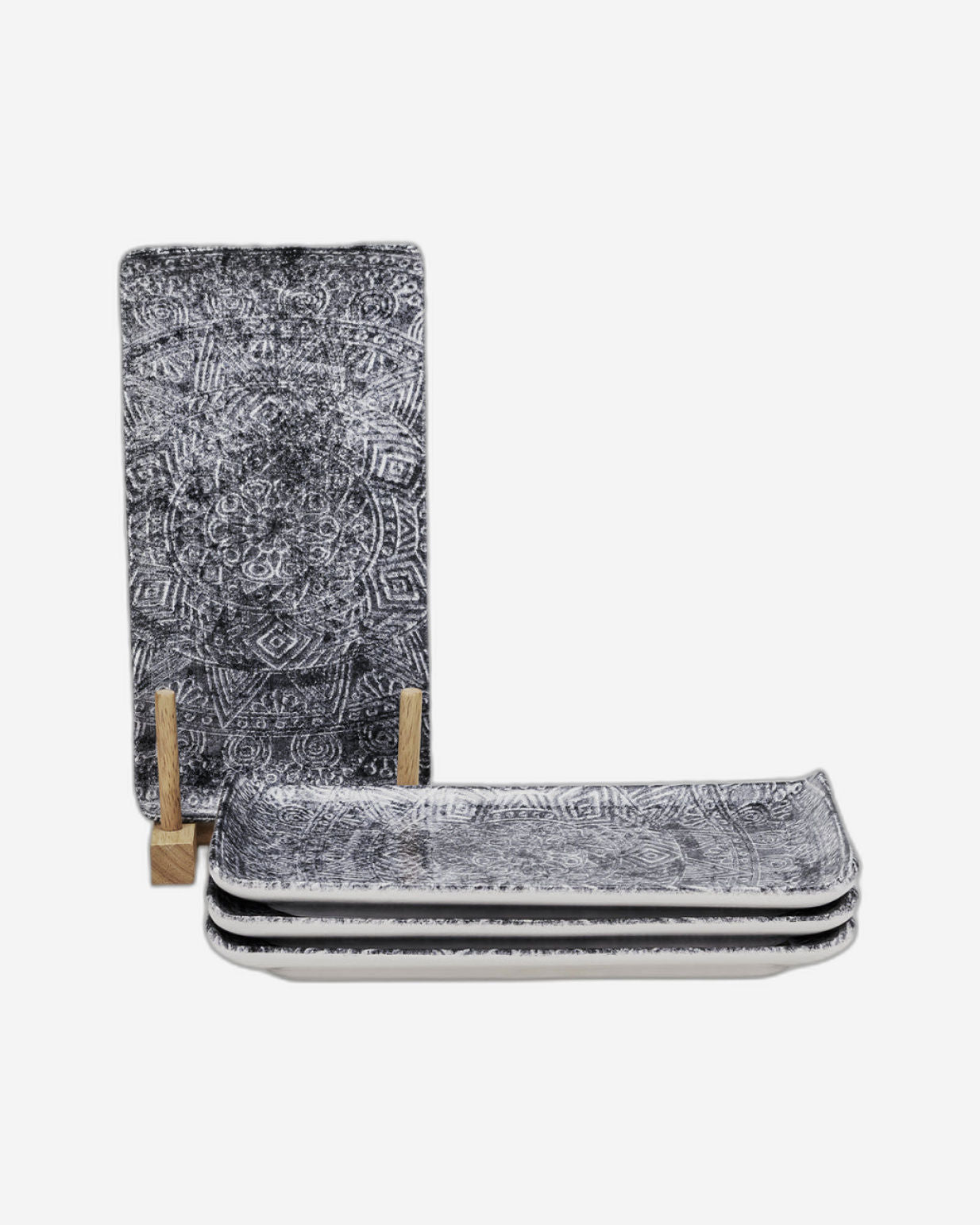 Edessa Ginko Ceramic Rectangle Serving Plate (Multicolor, 12.5 x 24cm, Set of 4)