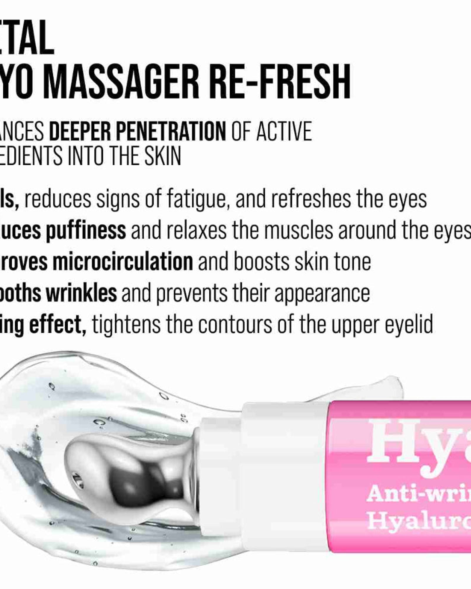 The unique “RE-FRESH” CRYO metallic applicator adds a refreshing cooling effect that helps to reduce puffiness while promoting microcirculation, ensuring optimal absorption of the active ingredients. In just 10 minutes a day, this eye care treatment not only smooths out wrinkles but also boosts collagen and elastin production, leaving the eye area looking revitalized, firm, and youthful.