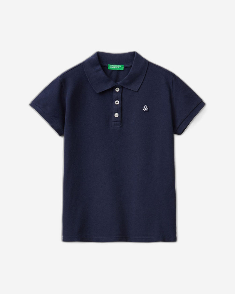 Short sleeve polo in stretch organic cotton pique. Classic cut with ribbed collar, partial opening with buttons and side slits at the bottom. Casual and womanly, with a logo patch on the left breast.