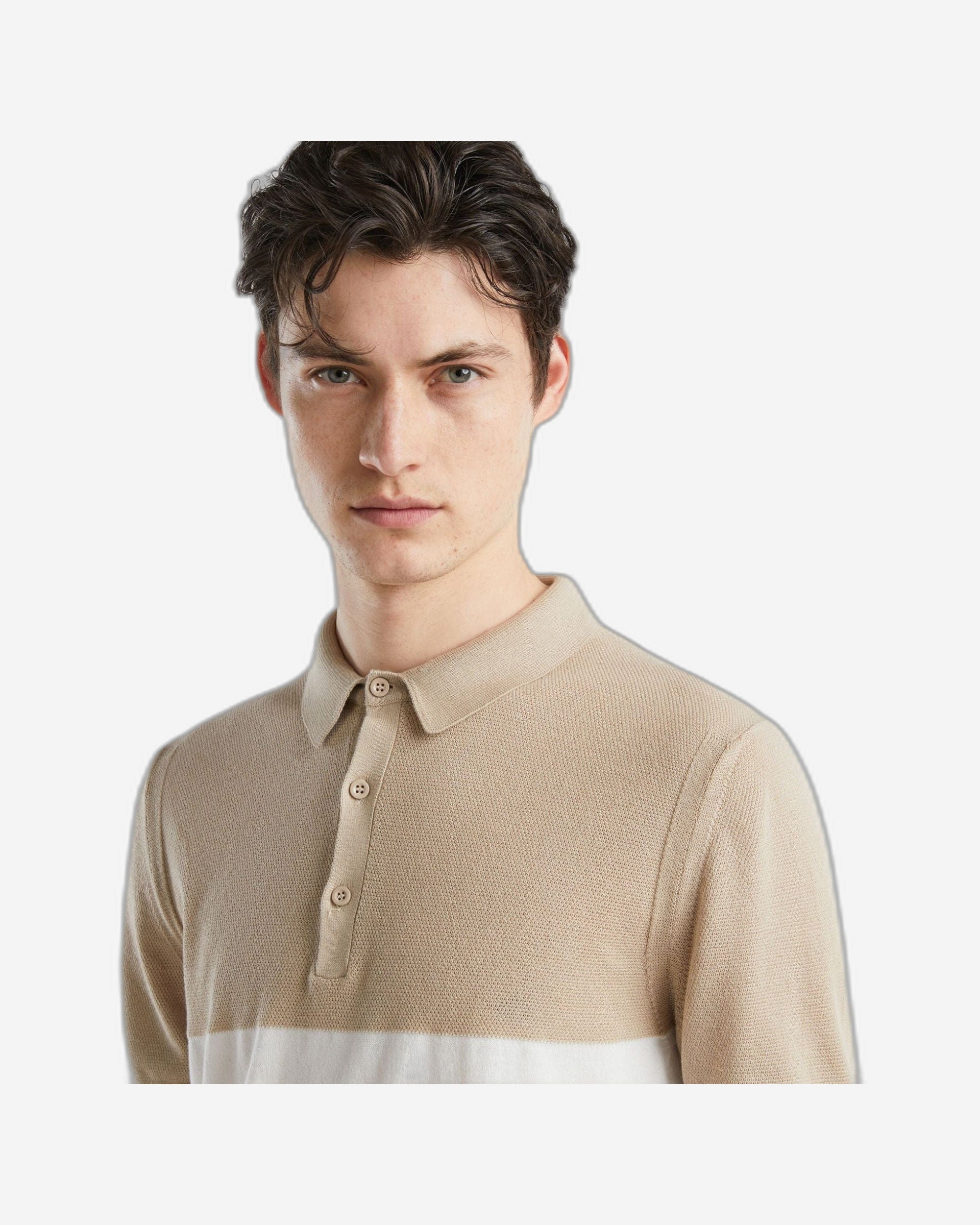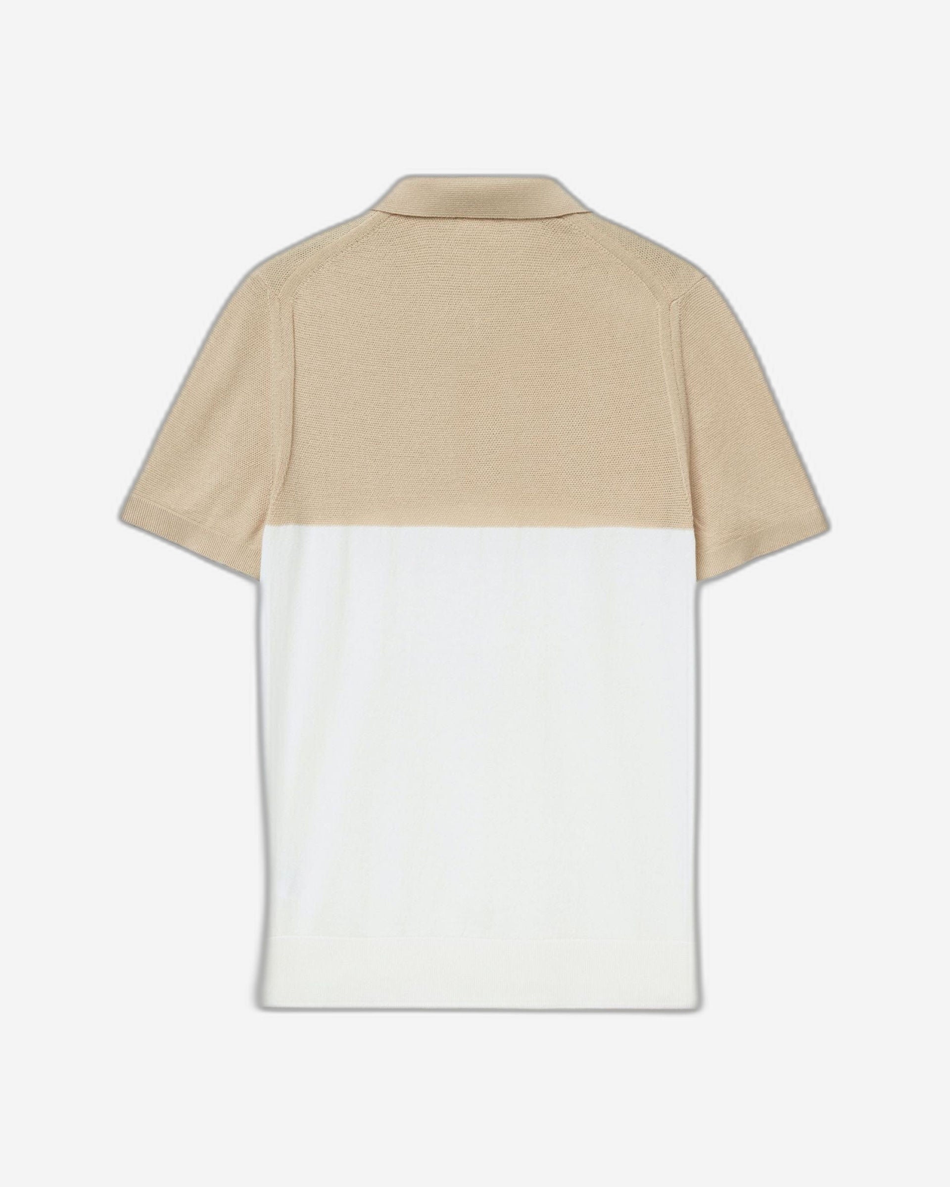 Short sleeve color block polo in pure tricot cotton. Knit with stitching on the upper part, classic collar and partial button opening. Soft and versatile, with contemporary style.