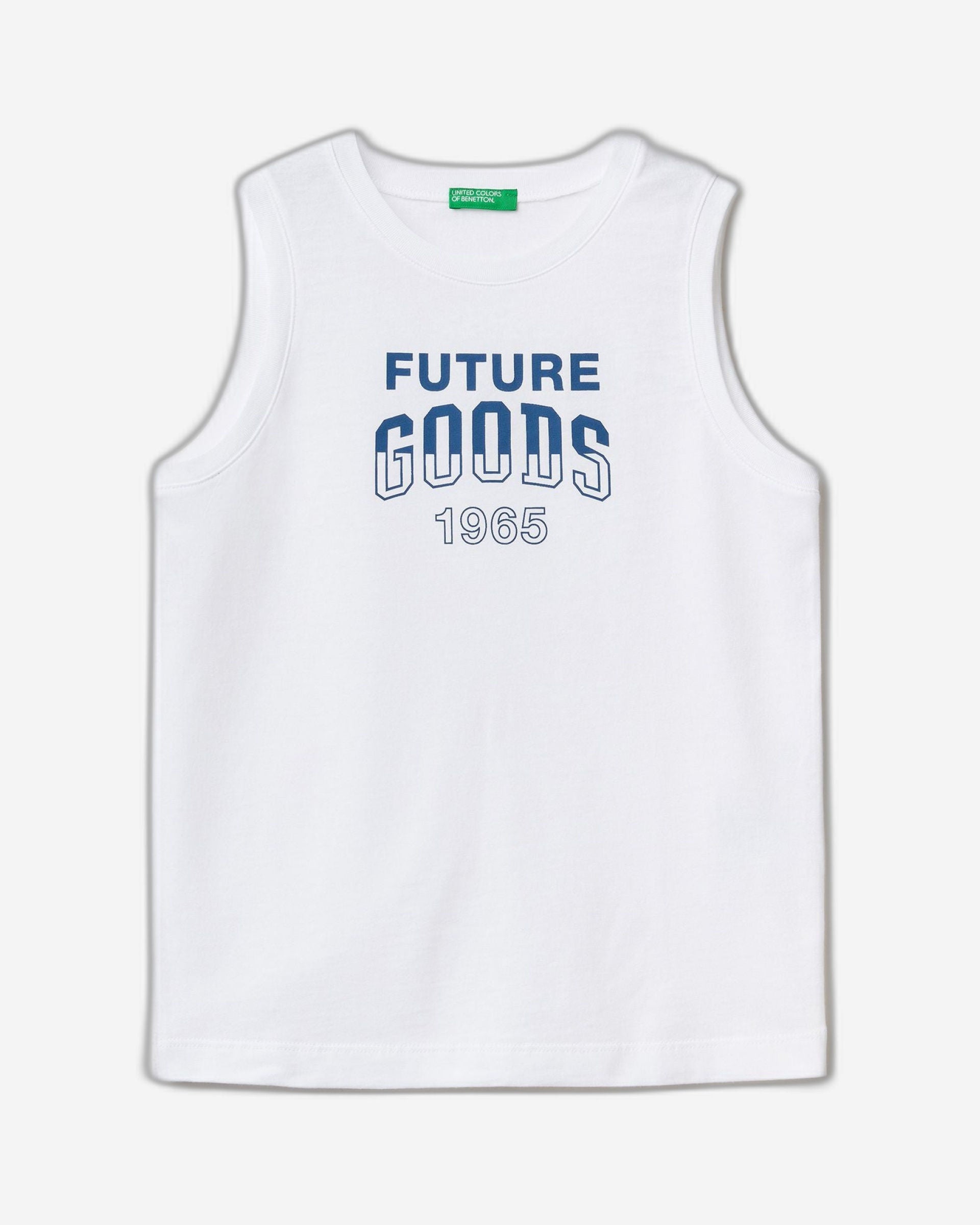 Sleeveless crew neck t-shirt in pure cotton with text print on the front. Sporty spirit, perfect for summer.