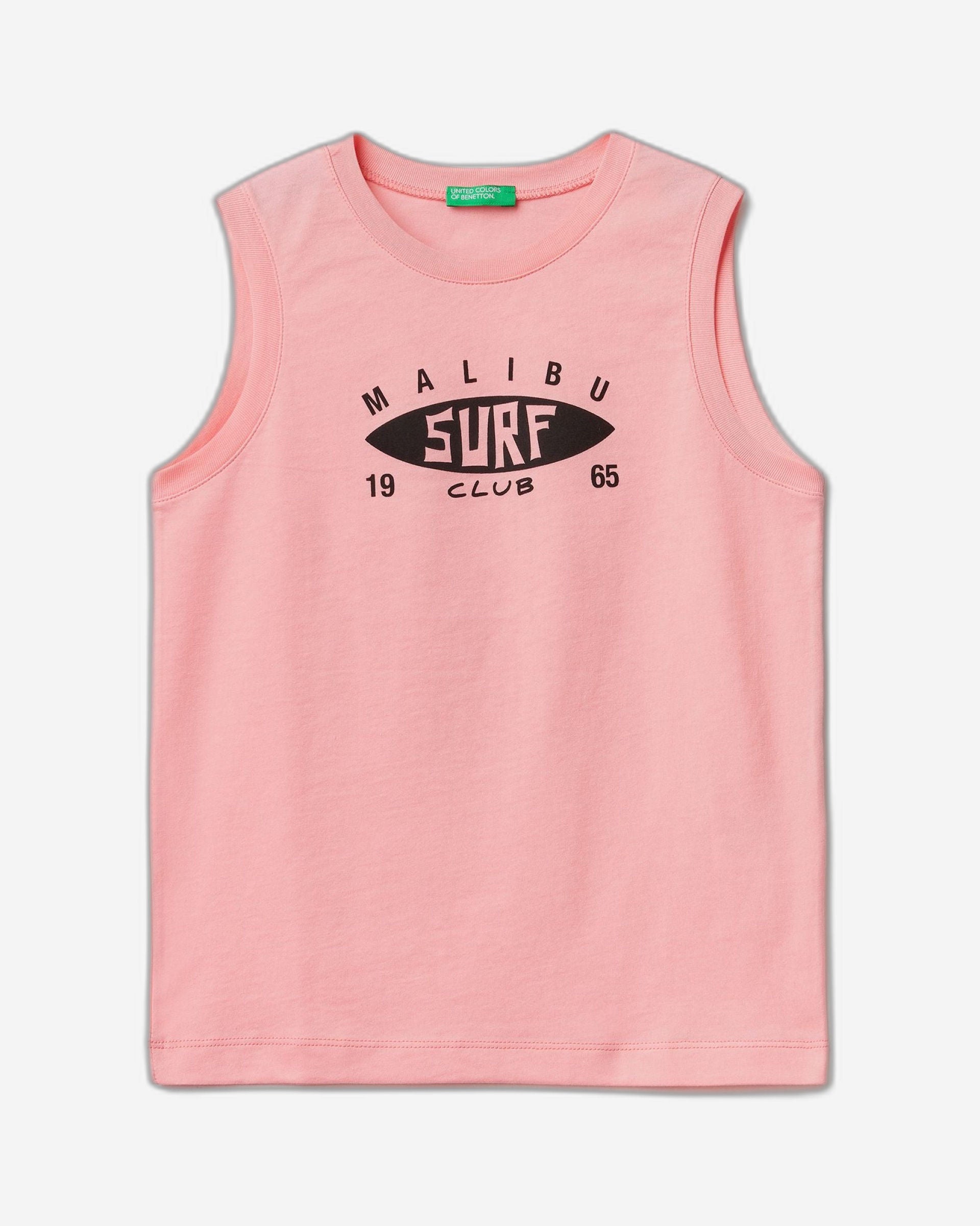 Sleeveless crew neck t-shirt in pure cotton with text print on the front. Sporty spirit, perfect for summer.