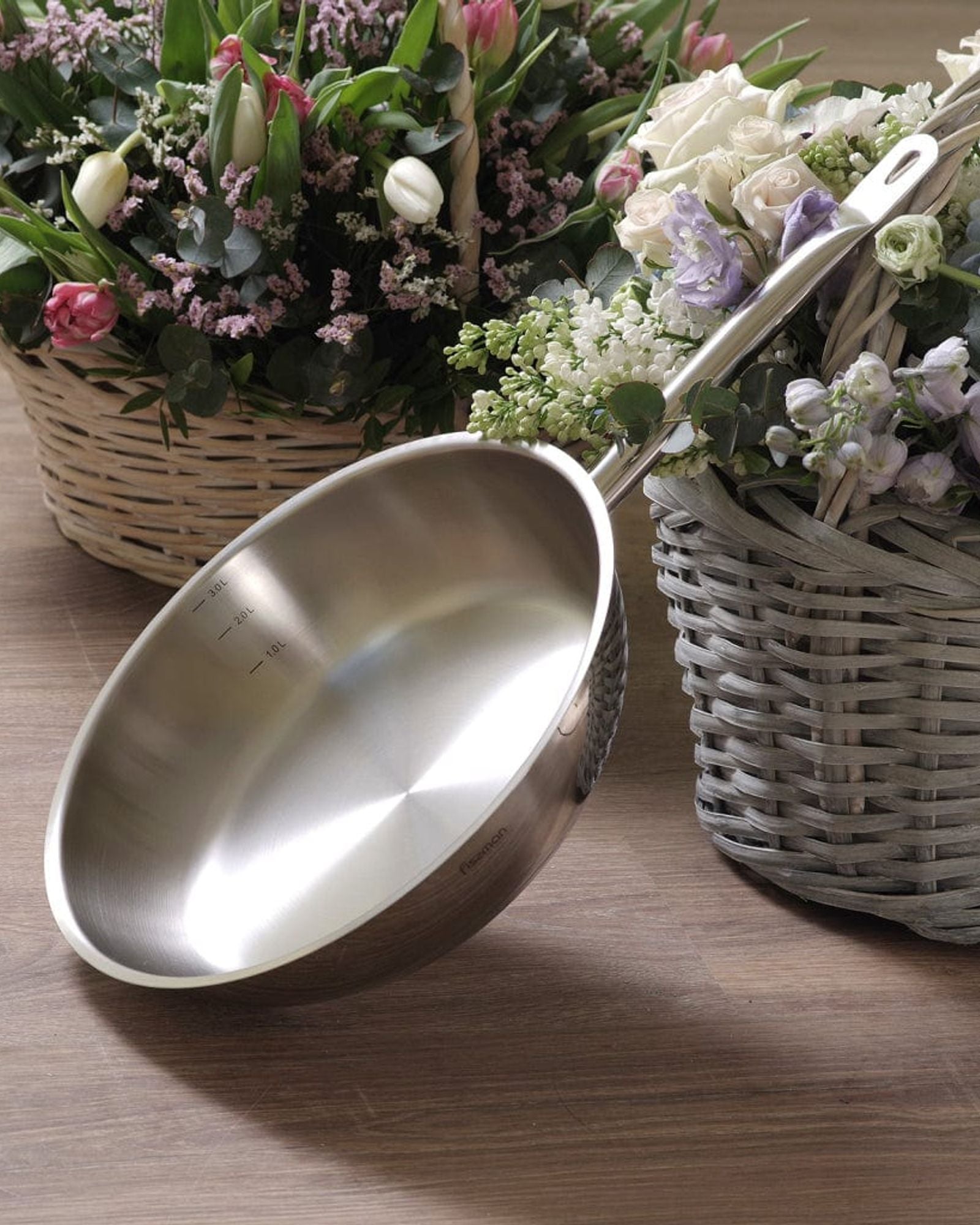 Cookware is one of the essentials in our kitchen after all, it’s what we use to create our food fantasies. Your choice of saucePan affects the taste, quality and aroma of the dish being prepared.Fissman only uses advanced technologies to design its cookware. We have set the goal to meet the needs of our customers and to achieve high quality products consistently.Fissman values its customers and pays great attention to the quality of all of its products.Fissman Frying Pan is made from the safest high-quality grade 18/10 (INOX304) Stainless Steel that is heat resistant, corrosion resistant and is very easy to clean. The multilayer encapsulated base offers outstanding heat distribution, thanks to layer of aluminium that helps reveal the taste of a dish and preserves all the food’s goodness. Additionally, the Induction layer makes the cookware universal for all types of cookers. Stainless Steel body 18/10 (INOX304) (high quality Stainless Steel) Multilayer Induction base (for all hob types, high heat conductivity) Measurement markings (to control the volume of liquid) Easy grip Stainless Steel Handle Safe for health and environmentally friendly Approved by professional chefs By choosingFissman products, you choose high-quality and safe cookware for yourself and your family.