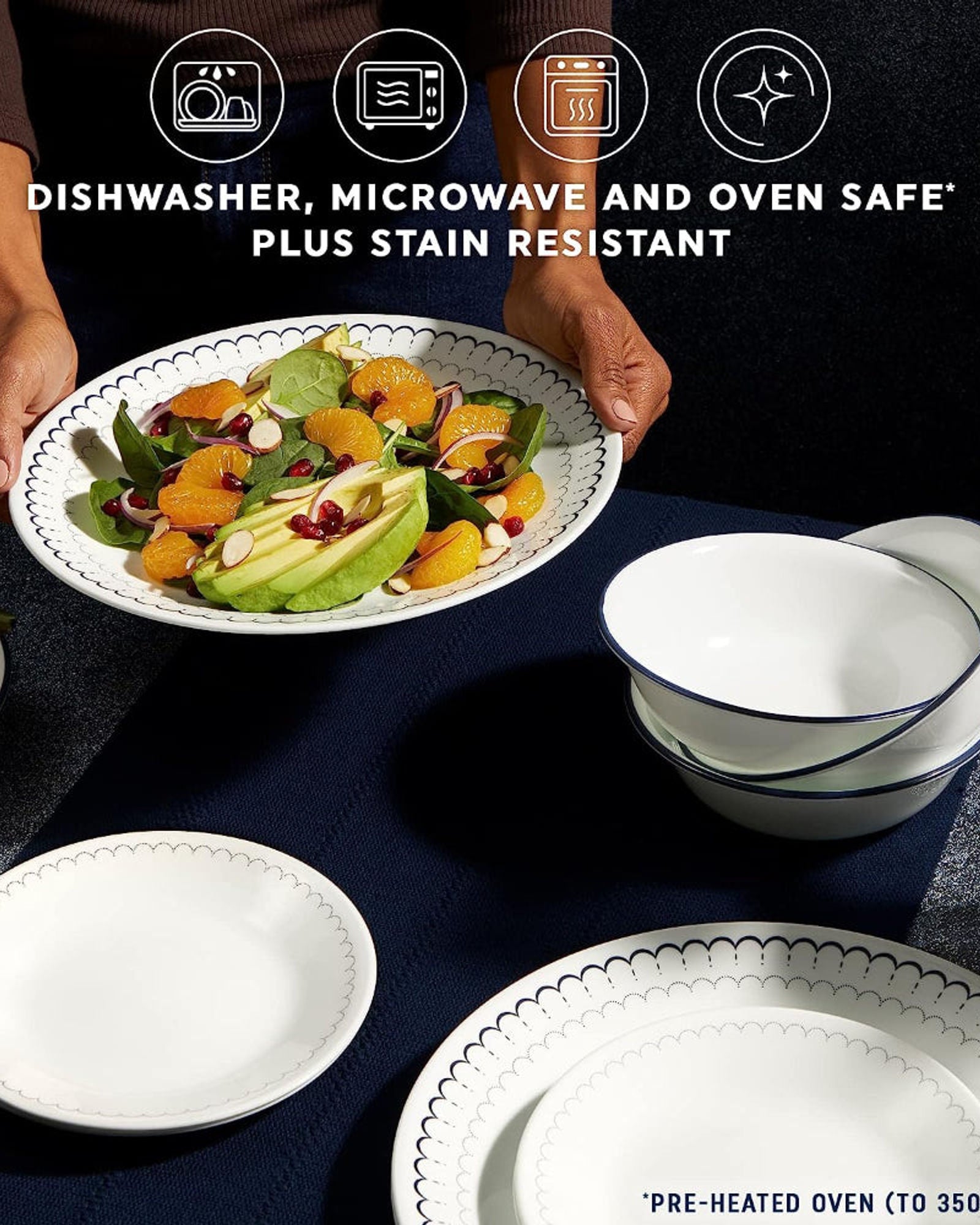 * DURABLE: Our unique, three-layer tempered glass is 3 x more durable than traditional ceramic tableware