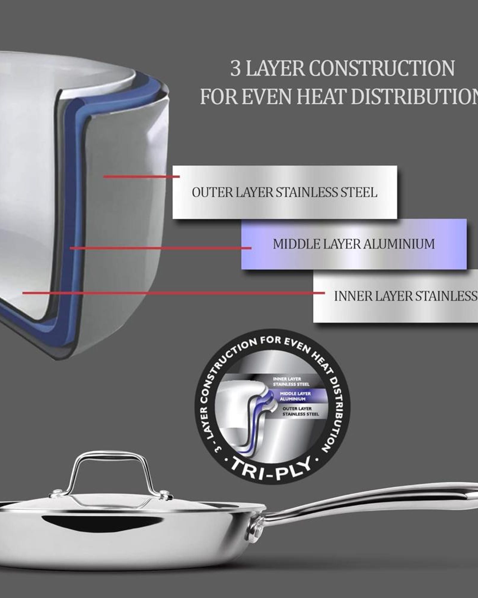 * EFFORTLESS COOKING GUARANTEED: The triply pan is aesthetically designed for enhanced safety and convenience. It is truly perfect for daily use and urban lifestyle.