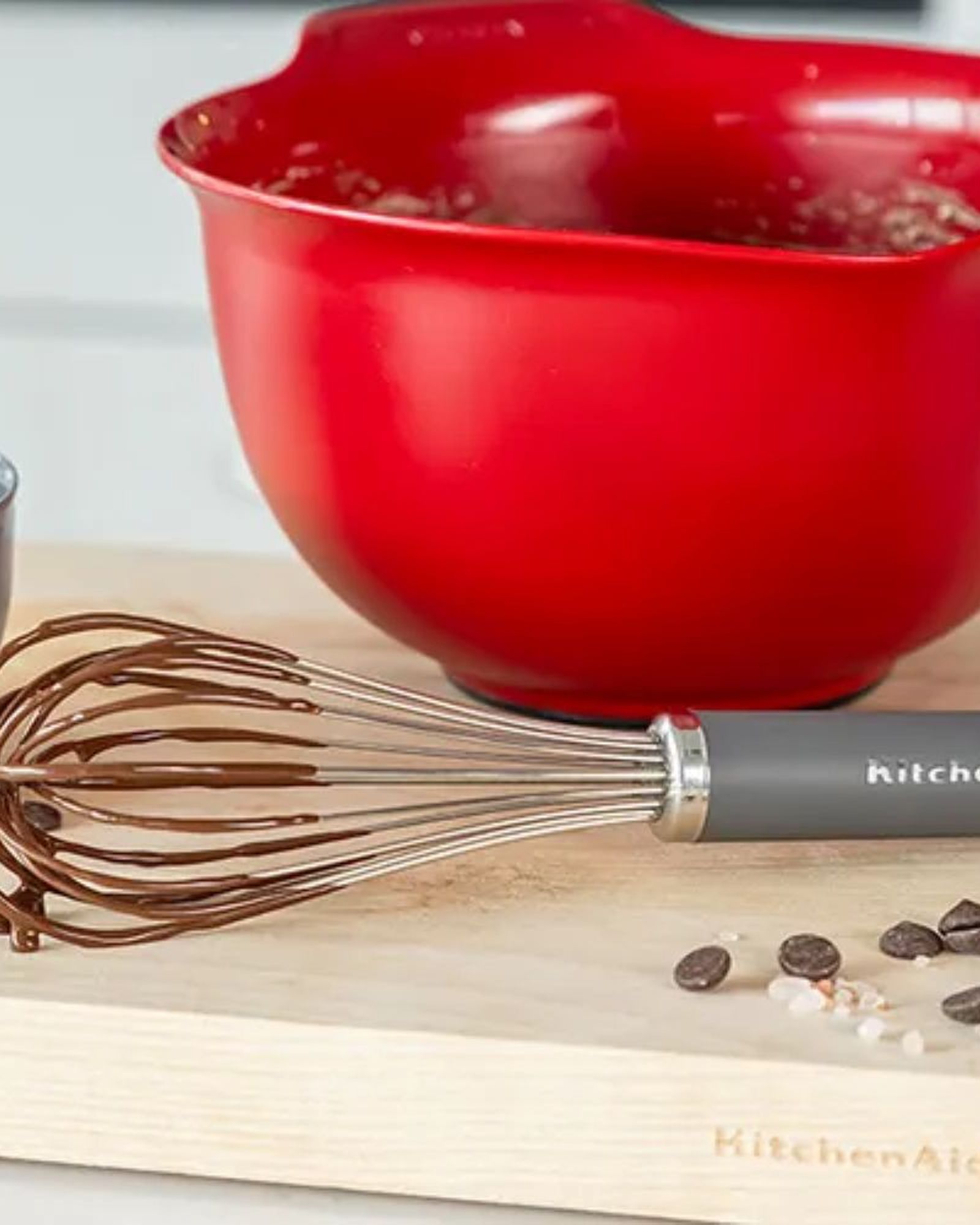 The KitchenAid utility whisk quickly incorporates air into ingredients for whipped cream and egg whites, as well as light and airy frostings. The strong and durable balloon whisk head is constructed from stainless steel and is ideal for any bowl size to assist with everyday prep tasks. The soft grip handle features a debossed logo and is also dishwasher-safe for easy cleanup. A superb whisk for everyday use.