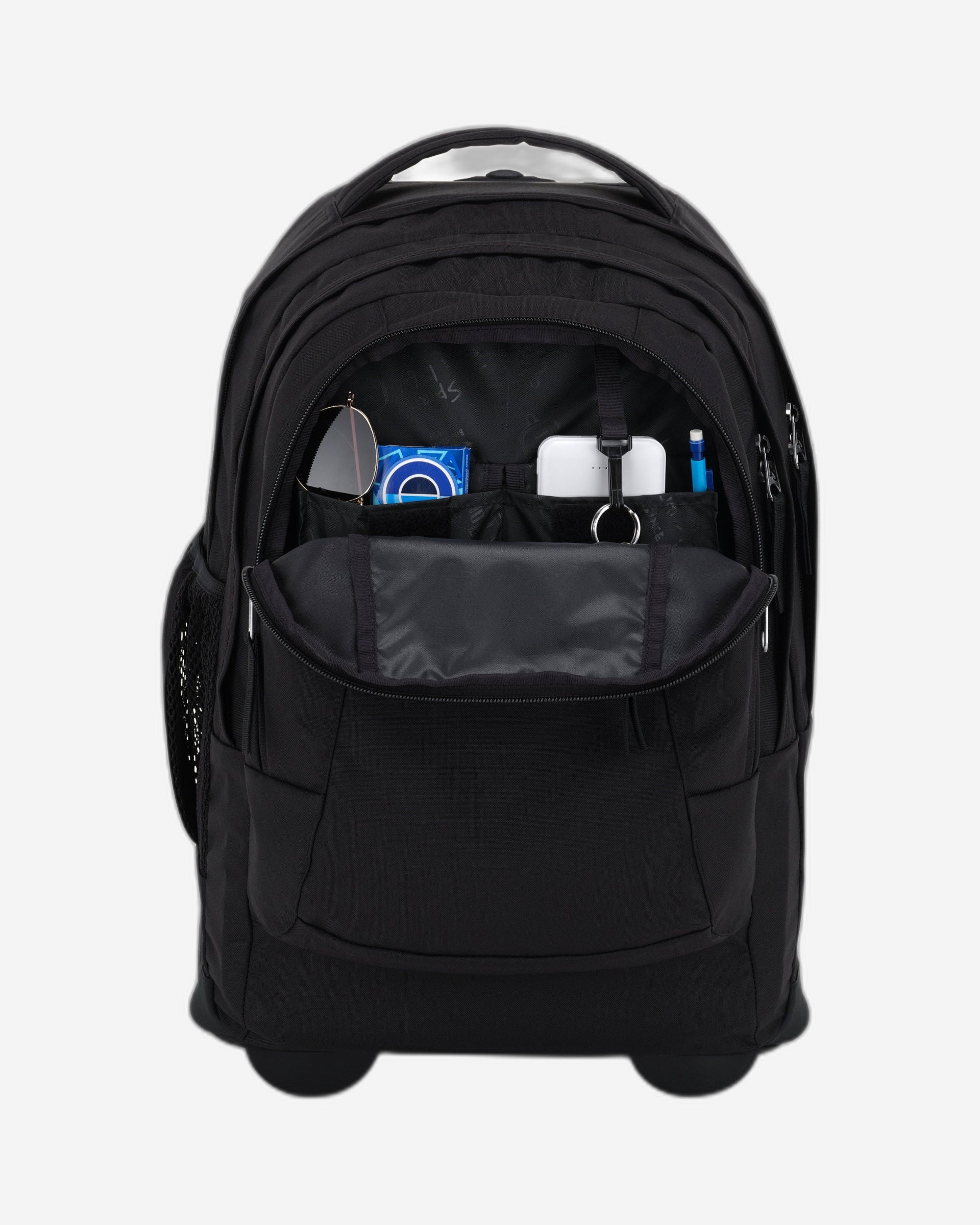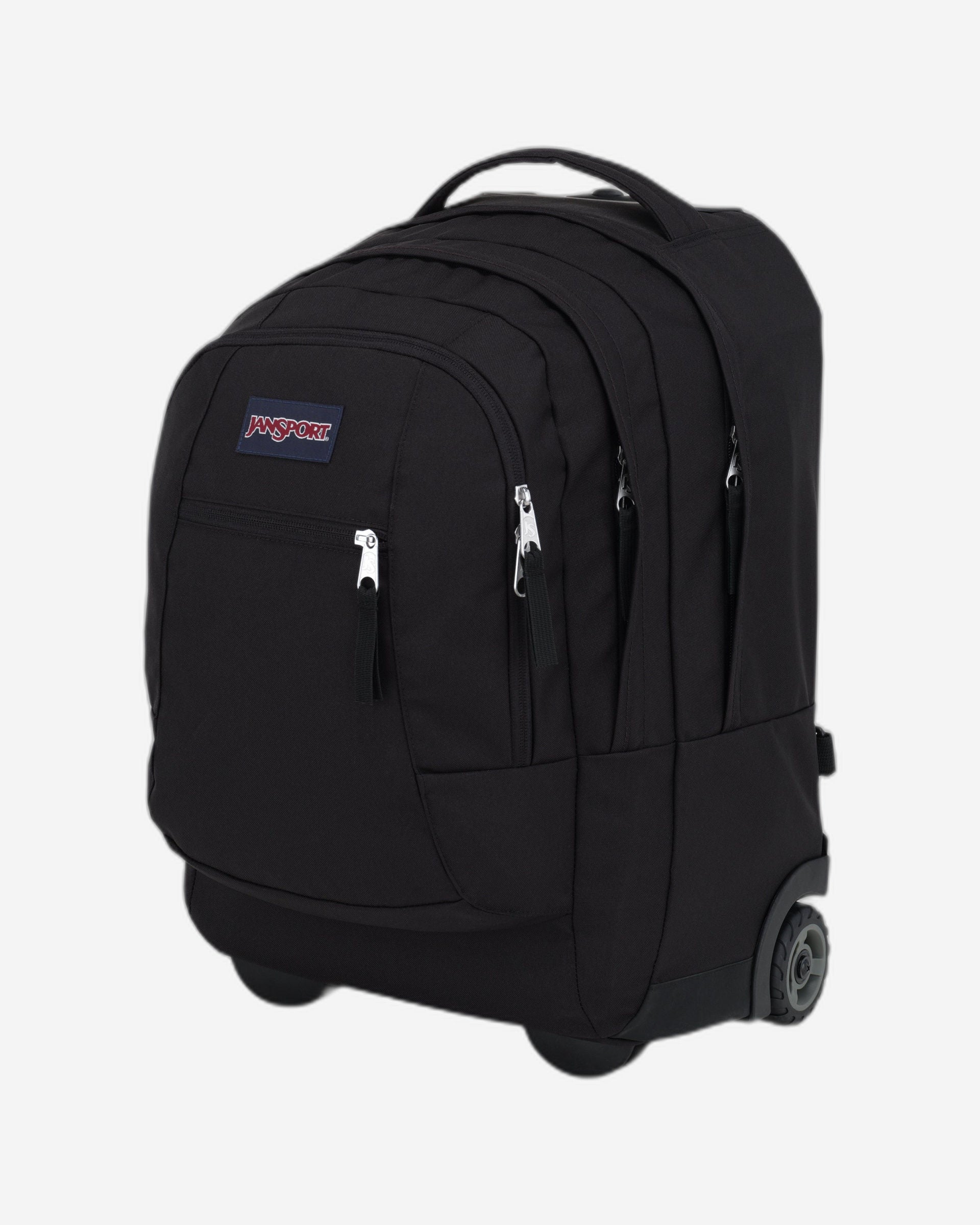 For a life on-the-move, the JanSport Driver 8 rolling backpack converts from backpack to roller with tuck-away shoulder straps. This wheeled laptop backpack features a padded 15 inch laptop sleeve, side water bottle pocket and front organiser pocket.