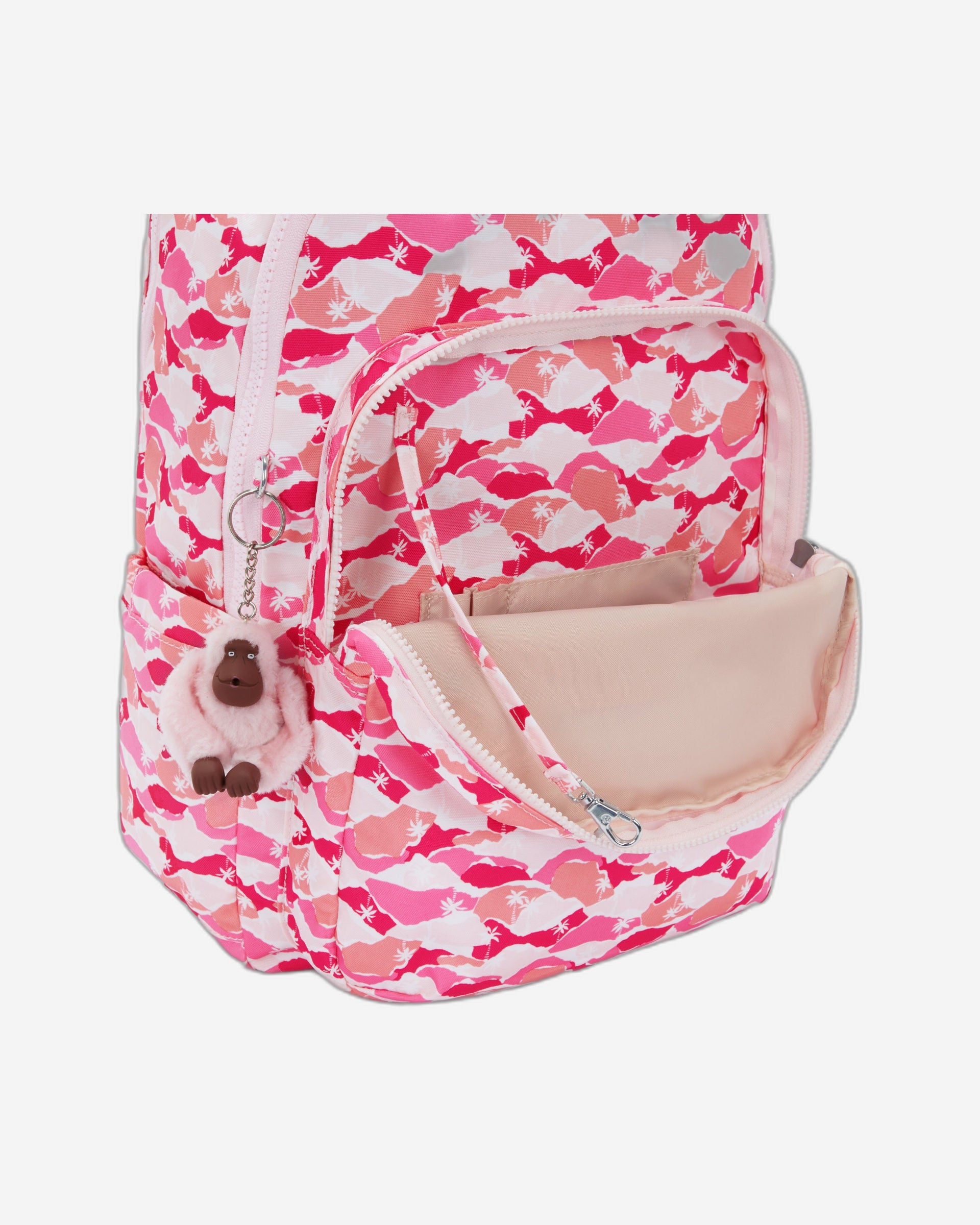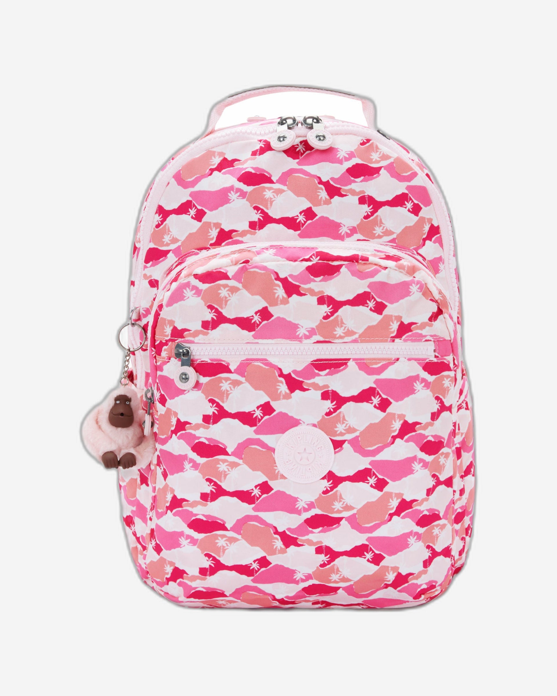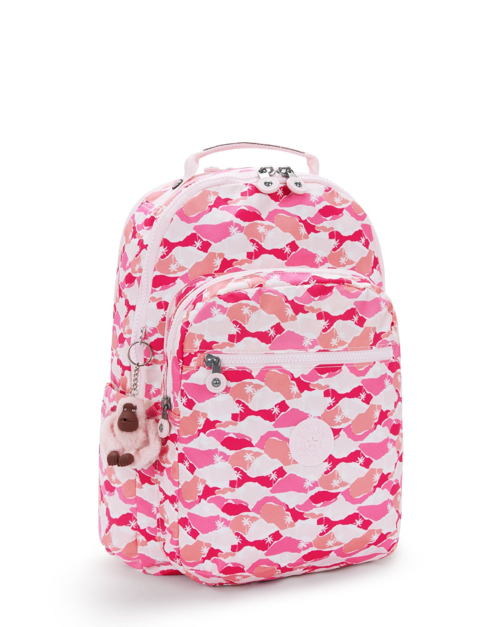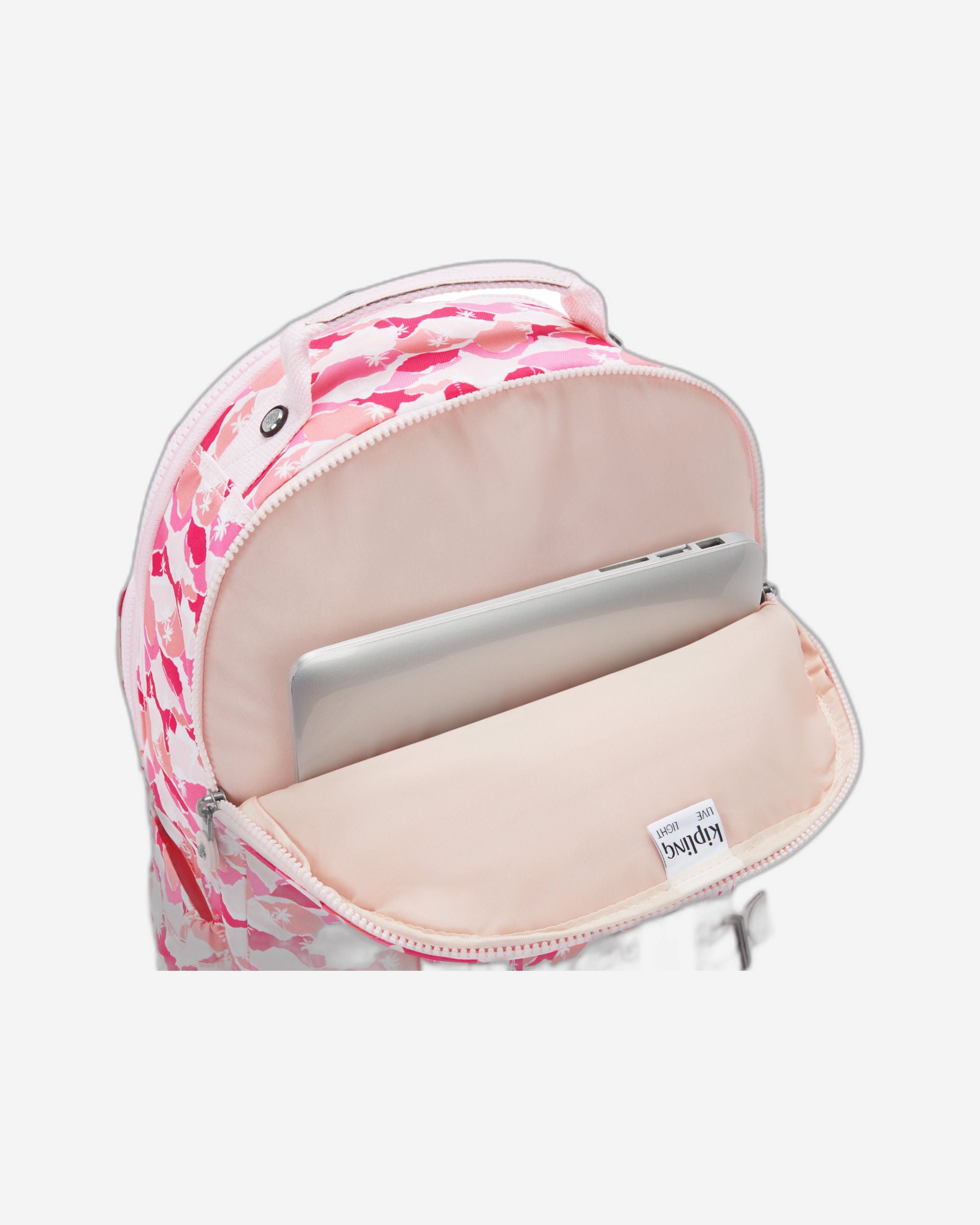 Kipling Seoul Lap Pink Palm Large backpack with laptop compartment I5816-1BV