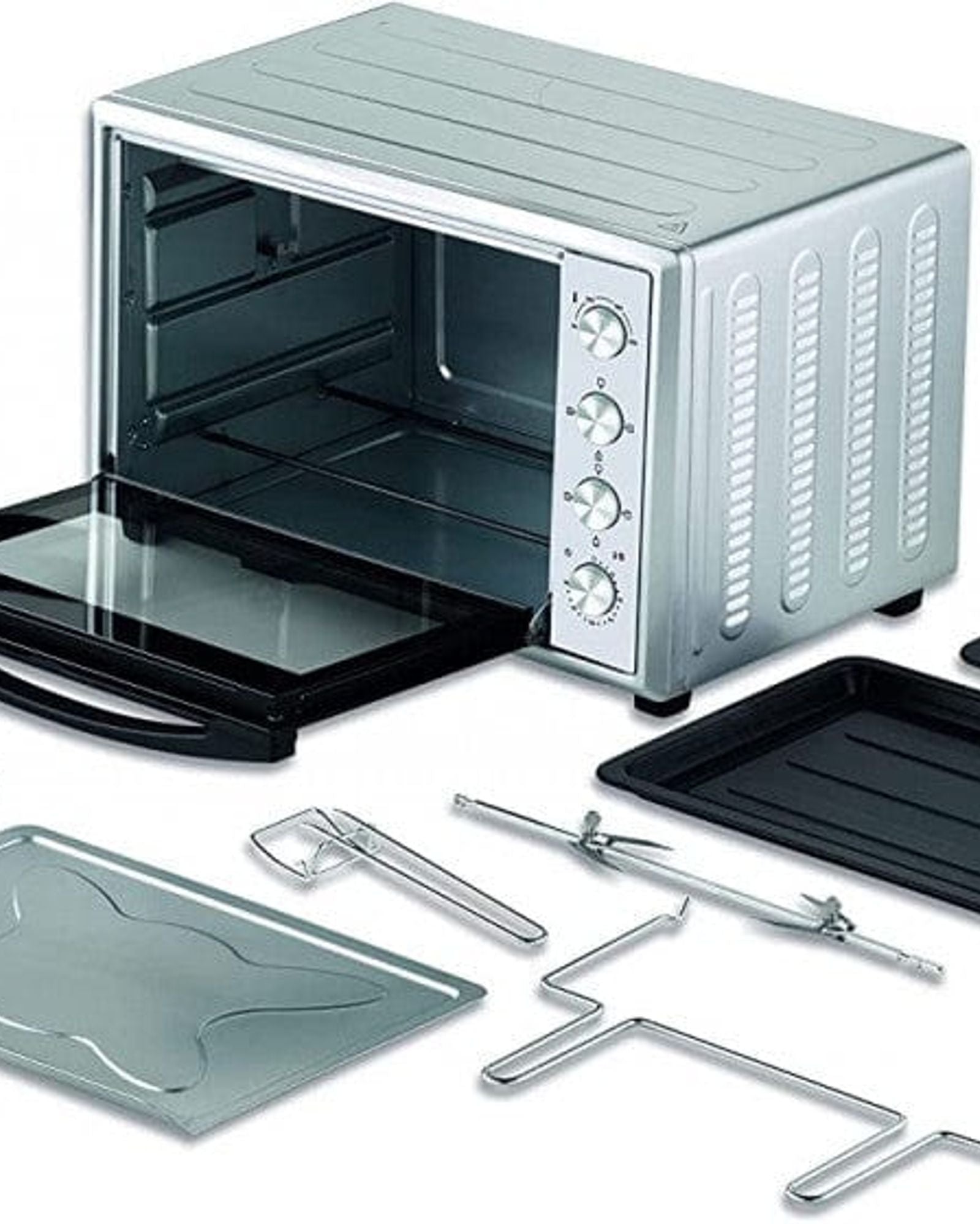 Accessories: Griddle, Handle for Remove Griddle, 2 Enamel Bake Tray, Rotisserie, Handle For Remove Rotisserie, Crumb Tray