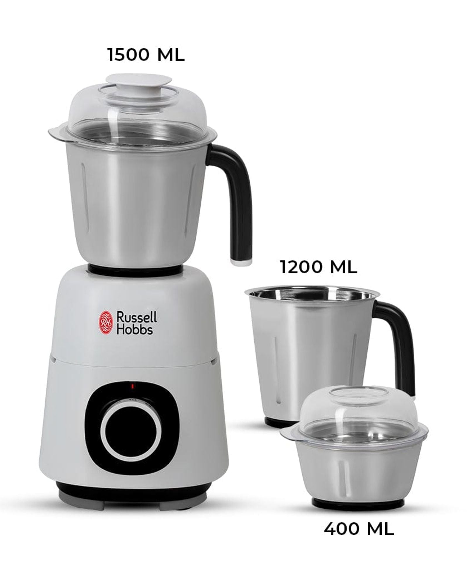 * 3 Stainless steel jars : Juicer Jar (1.5L), Wet Jar (1.2L) and Dry Jar (0.4L)