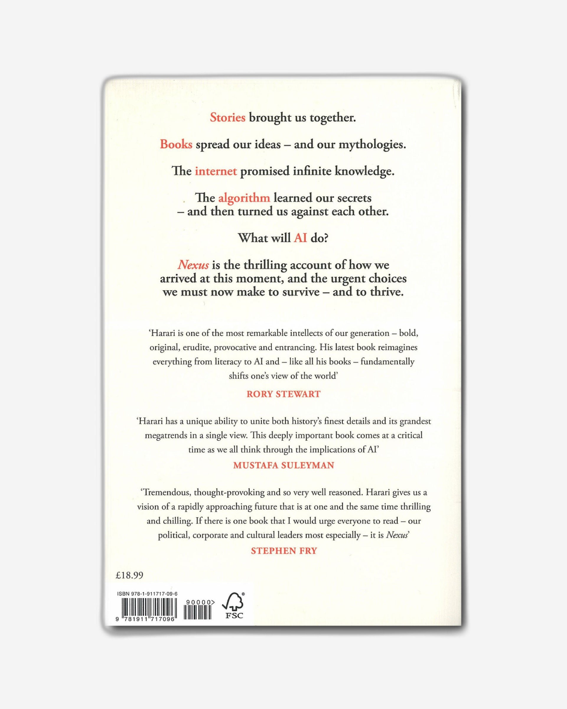 Nexus looks through the long lens of human history to consider how the flow of information has shaped us, and our world. Taking us from the Stone Age, through the canonization of the Bible, early modern witch-hunts, Stalinism, Nazism, and the resurgence of populism today, Yuval Noah Harari asks us to consider the complex relationship between information and truth, bureaucracy and mythology, wisdom and power. He explores how different societies and political systems throughout history have wielded information to achieve their goals, for good and ill. And he addresses the urgent choices we face as non-human intelligence threatens our very existence.
