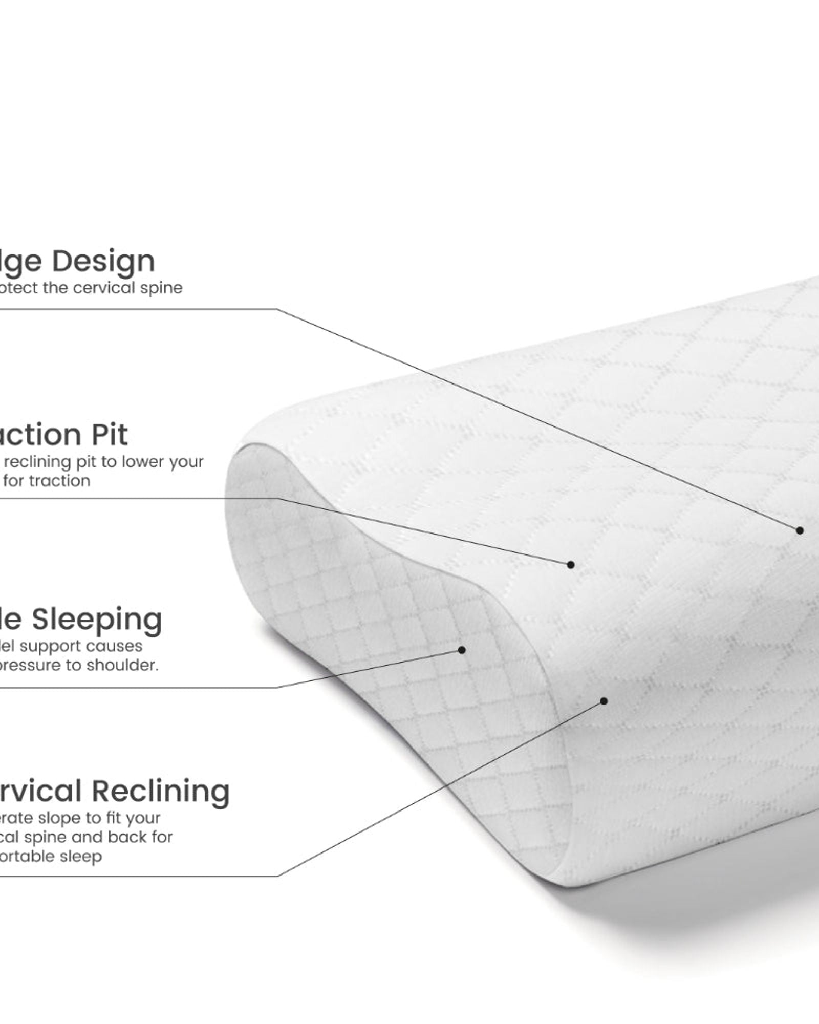 The Cervical Neck Support Memory Foam Pillow comes with a removable white quilted cover, which is easy to clean and maintain. The cover is designed to keep the pillow clean and protected, while also providing an added layer of softness and comfort