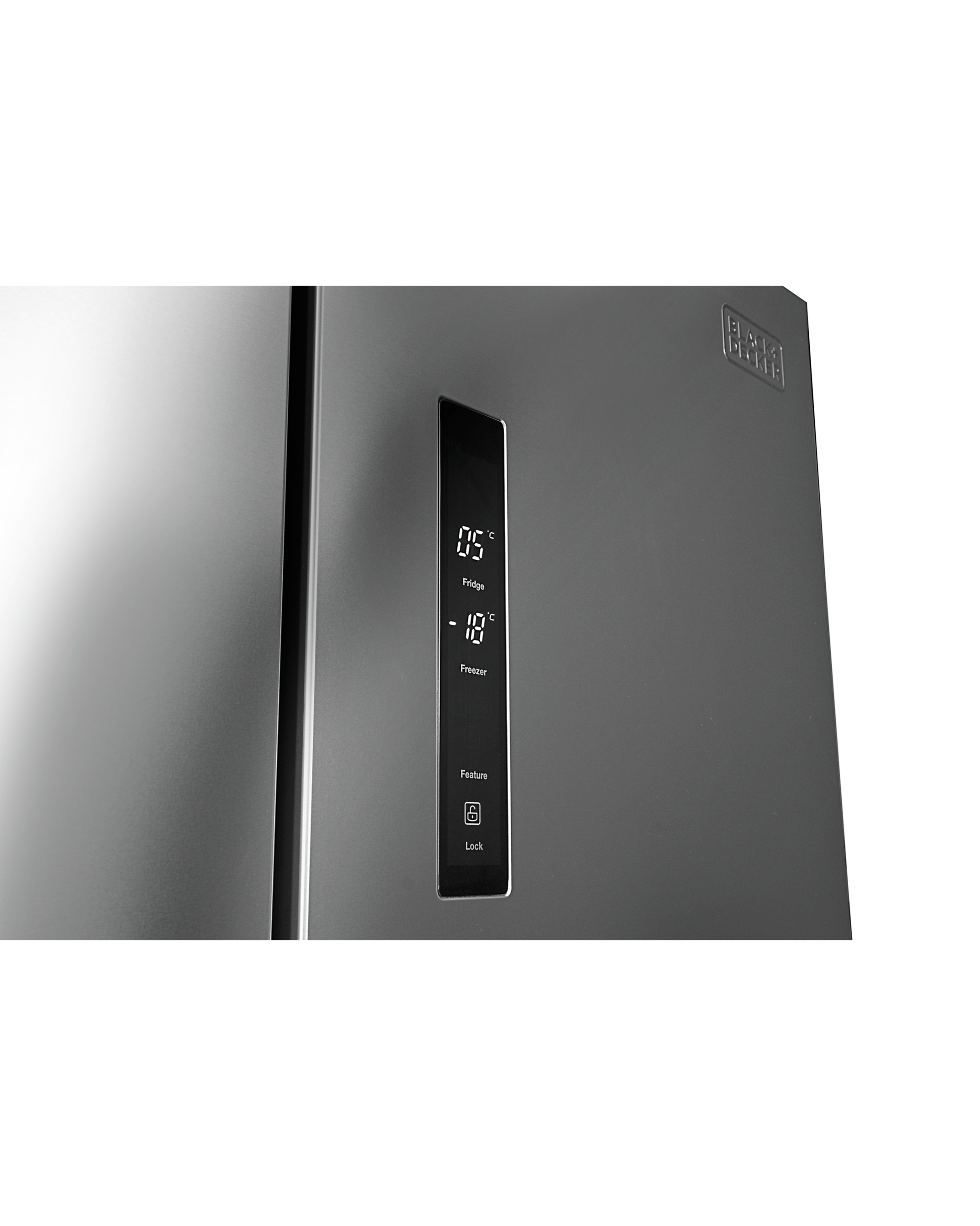 Experience superior cooling with the BLACK+DECKER BXREF542NF4DISNX cross door refrigerator. This sophisticated appliance offers a generous 567-litre capacity, featuring a spacious 363-litre refrigerator compartment and a substantial 204-litre freezer section. The advanced inverter compressor operates whisper-quiet at just 37 dB while maintaining optimal temperature consistency throughout. The Total No Frost technology eliminates tedious manual defrosting and prevents ice build-up, ensuring your food stays fresh longer. The intuitive LED display provides easy temperature control, while smart features like Super Cooling, Super Freezing, and Holiday Mode adapt to your preservation needs. Finished in elegant silver with an integrated handle design, this refrigerator combines practicality with modern aesthetics. The thoughtful design includes convenient features such as adjustable feet, easy-glide wheels for repositioning, and an open door alarm. Whether you're storing fresh produce or frozen goods, this refrigerator delivers reliable performance with sophisticated style for your kitchen.