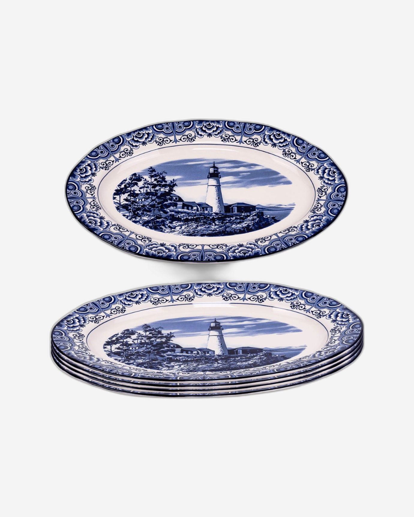 Claytan Lighthouse Blue 14.2-Inch Ceramic Oval Platter (Set of 1)