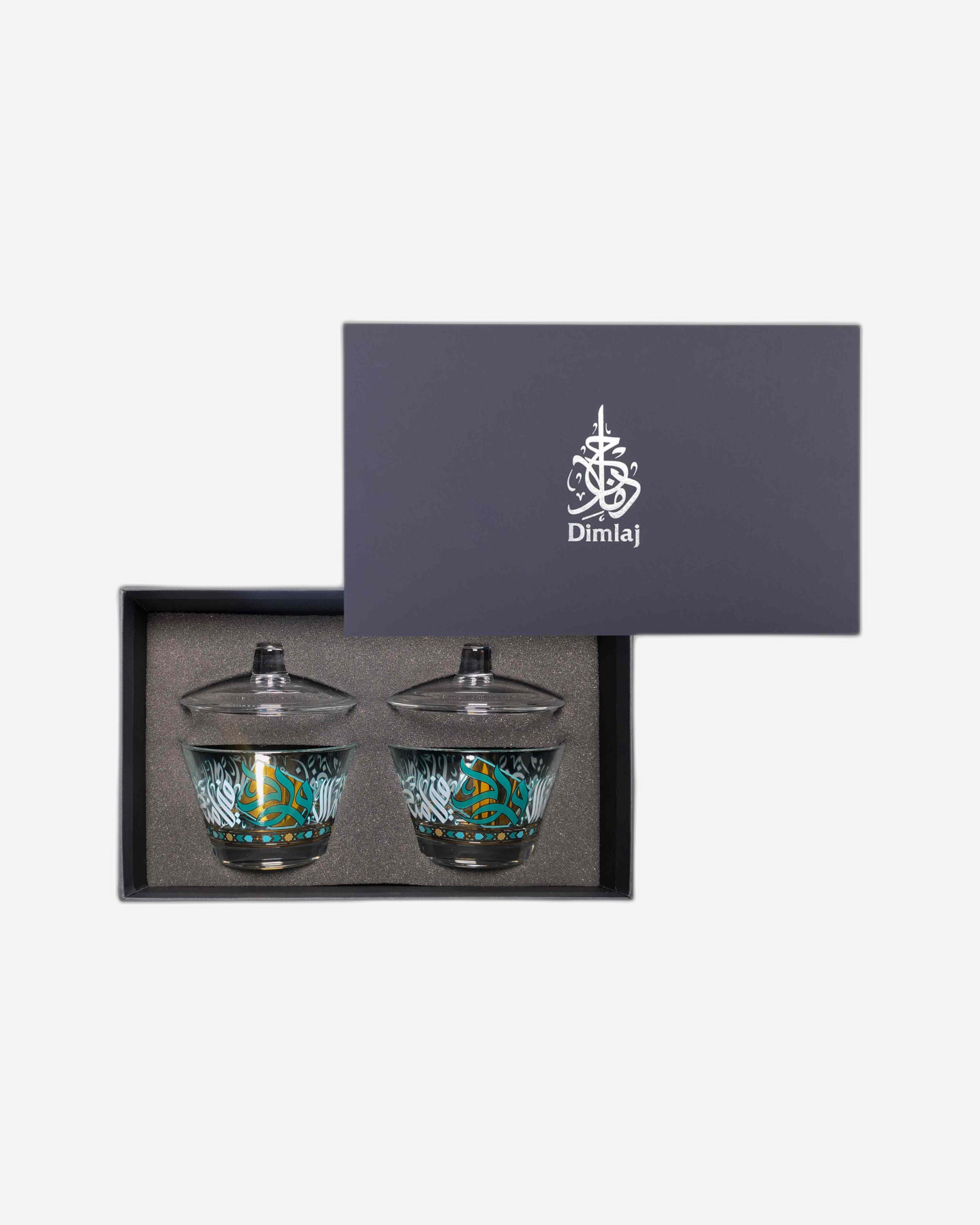 Dimlaj Wurood Serving Bowls & Lid 2Pc Gold & Green