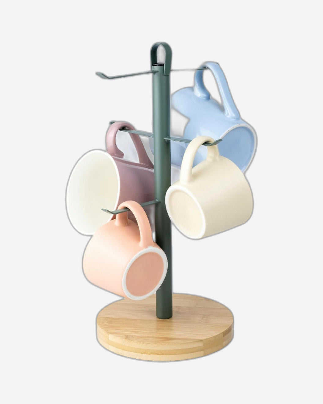 * Holds Mugs of Various Sizes & Shapes: Cups hang on the mug tree by the handle, accommodating any size of ceramic or glass coffee or teacup.