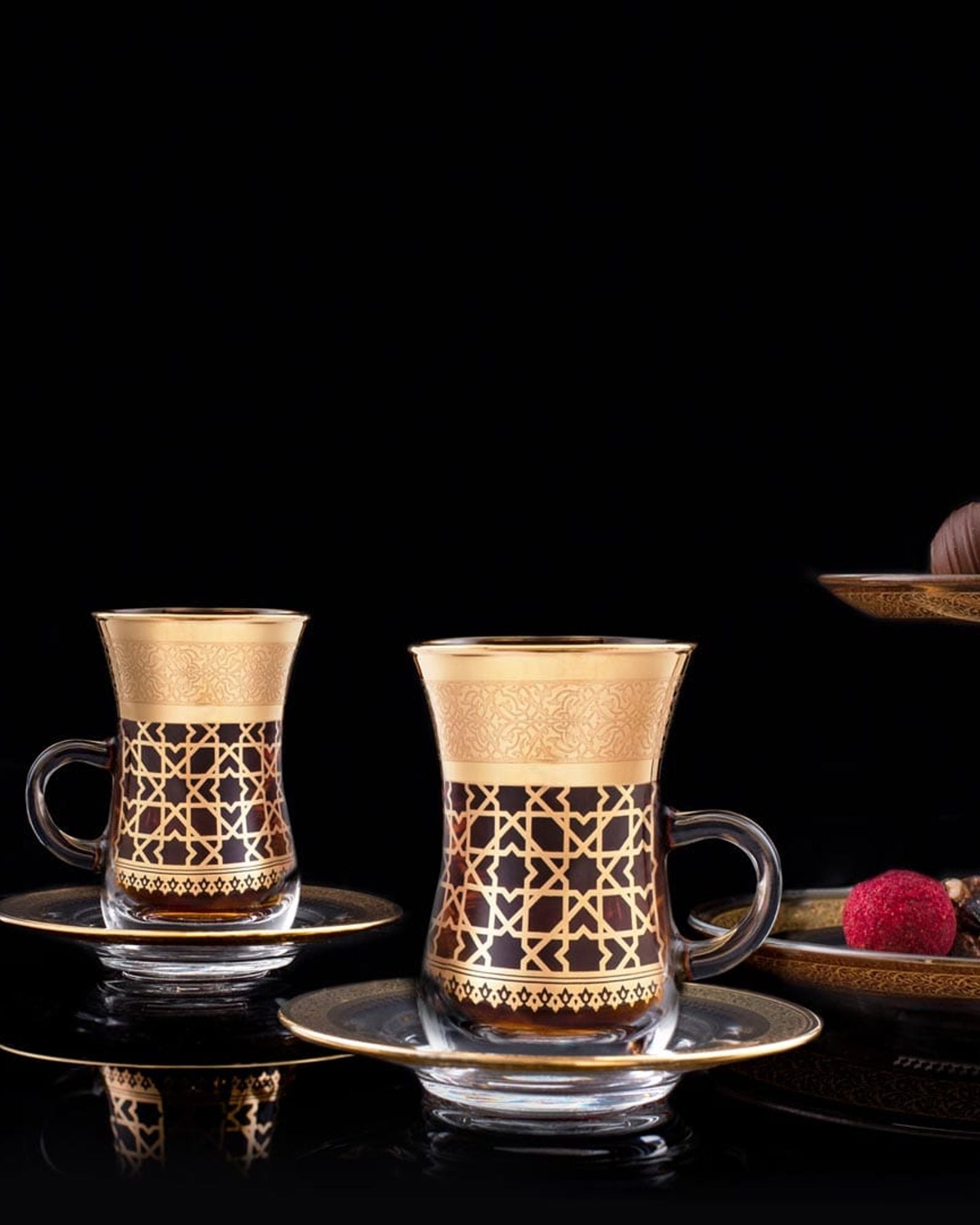 Dimlaj Cordoba Tea Istikanas & Saucers 6Pc Gold