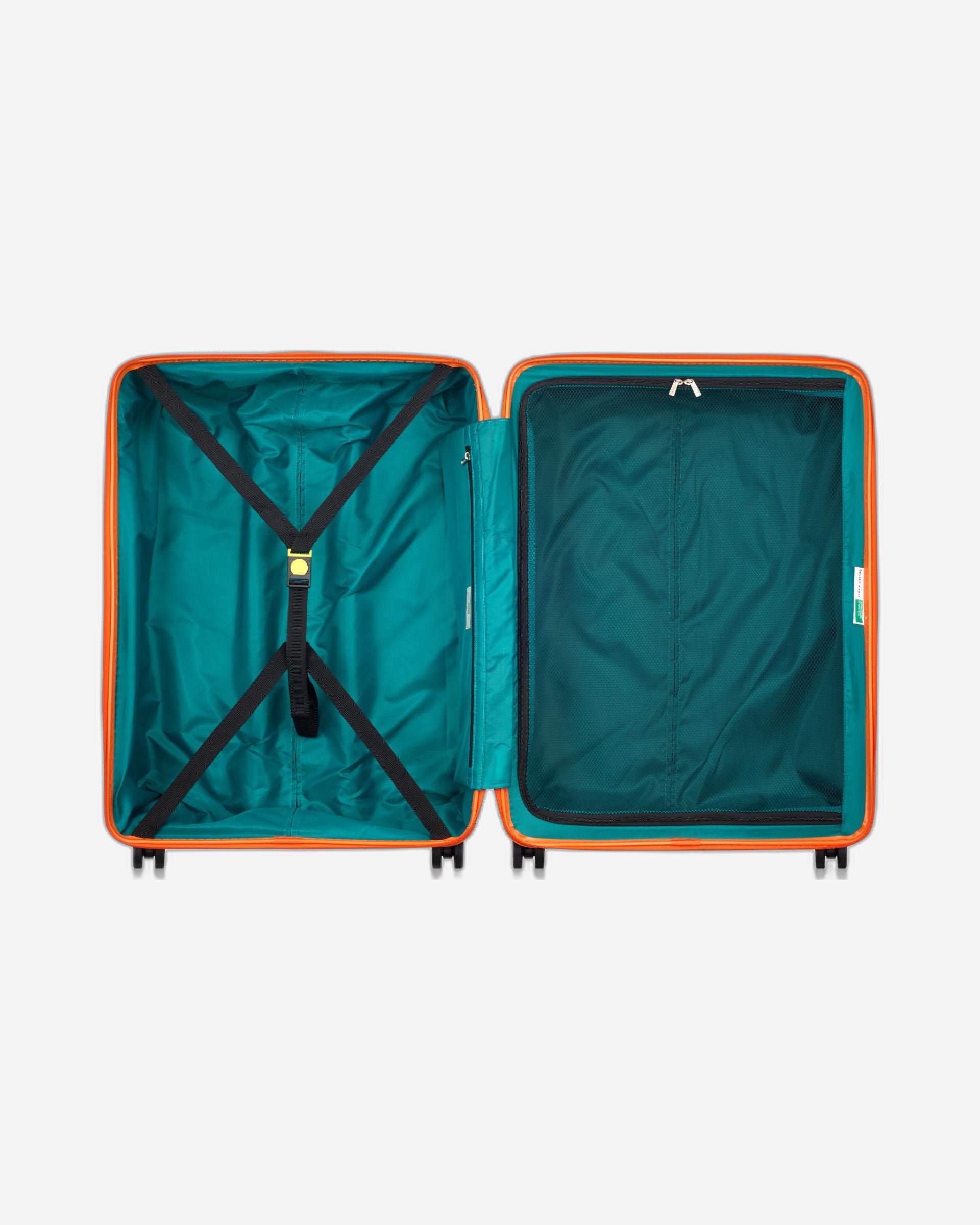 Fabrica channel the vibrant vintage colors of Benetton’s 90s golden age, blending 2000s design elements. The name pays tribute to Benetton’s Art Foundation. Fabrica, supporting your artists.Practical, this backpack has two exterior pockets to keep all the essentials close at hand. Inside, a foam pocket can store a 15.6’’ computer.Adjust the straps to your liking and take advantage of the reinforcements at the back and shoulder for greater comfort.A retaining loop at the back of the bag allows it to be easily slipped onto the suitcase trolley to group and roll luggage in a single movement.