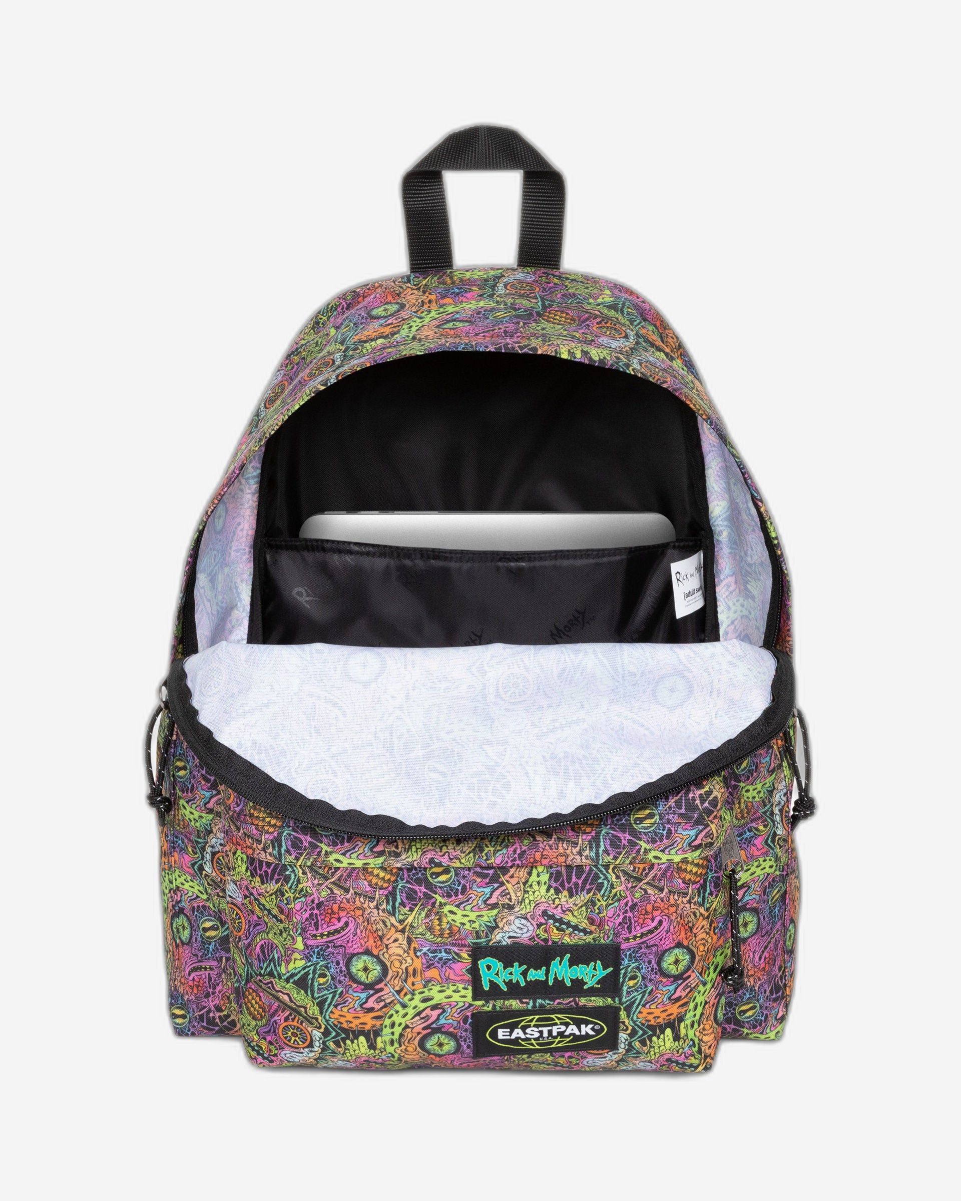The ultimate day pack from our official collaboration with Rick and Morty. This backpack features in a kaleidoscopic print inspired by the animated series. Use the built-in laptop sleeve to protect your tech and stash you water bottle in one of the side pockets.