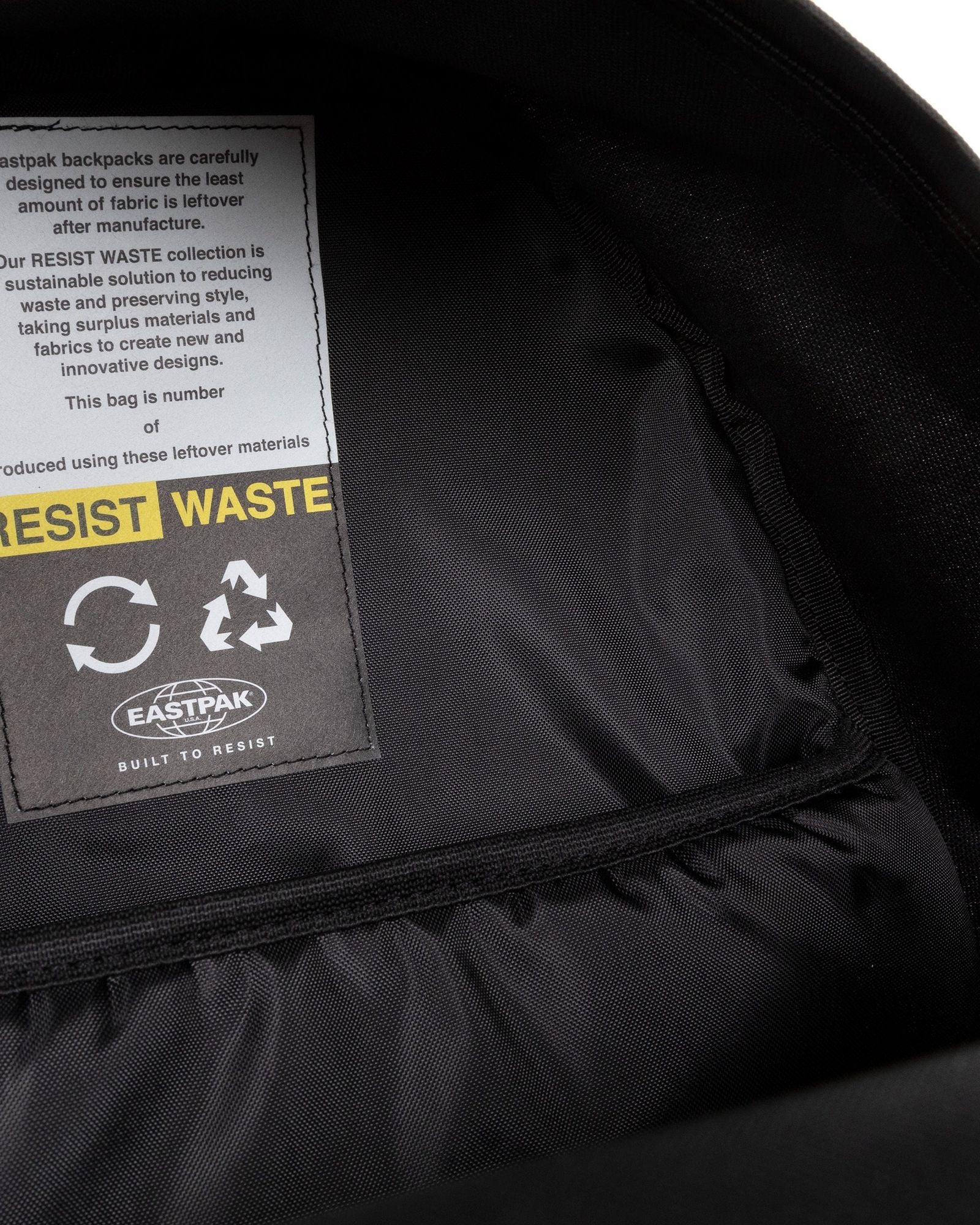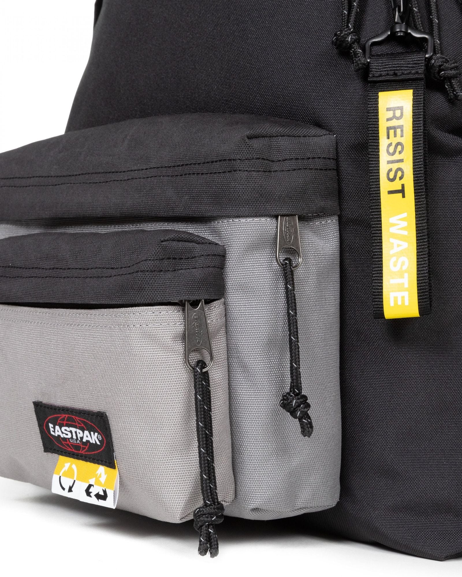 Our RESIST WASTE collection presents a backpack with double front pockets as part of our mission to reduce waste and preserve style. This sustainable design is crafted from surplus materials and leftover fabrics. Featuring a built-in laptop sleeve, bottle holder and detachable RESIST WASTE keychain.