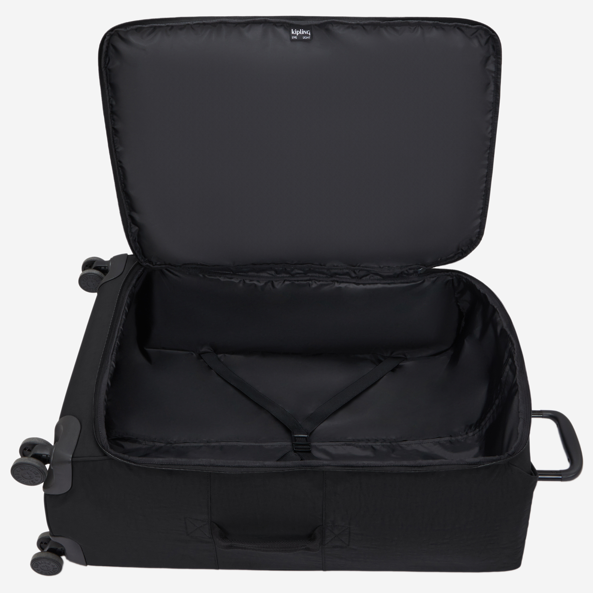 | Exterior: | - Silicone luggage tag - Zipped main compartment - Zipped mesh inside pocket - 2 zipped front pockets - Exterior and interior cinch straps - 4 dual 360° rotation wheels - Top, side and front carry handles - Double TSA lock - D ring - Round Kipling logo - Three style sizes nest inside one another |