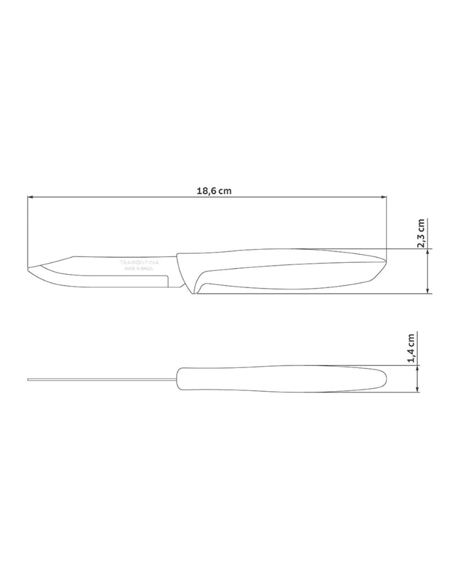 To prepare that delicious salad or vegetable stew for your meals, Tramontina Plenus 3-inch vegetable and fruit knife with stainless-steel blade and black polypropylene handle is essential. With a stainless-steel blade and polypropylene handle, it is a resistant knife with high cutting power, as it is heat treated. Its handle is made of polypropylene, ensuring high resistance and durability, in addition to a much more comfortable and special handling. It is still very easy to clean and dishwasher safe, optimizing your tasks in the kitchen!