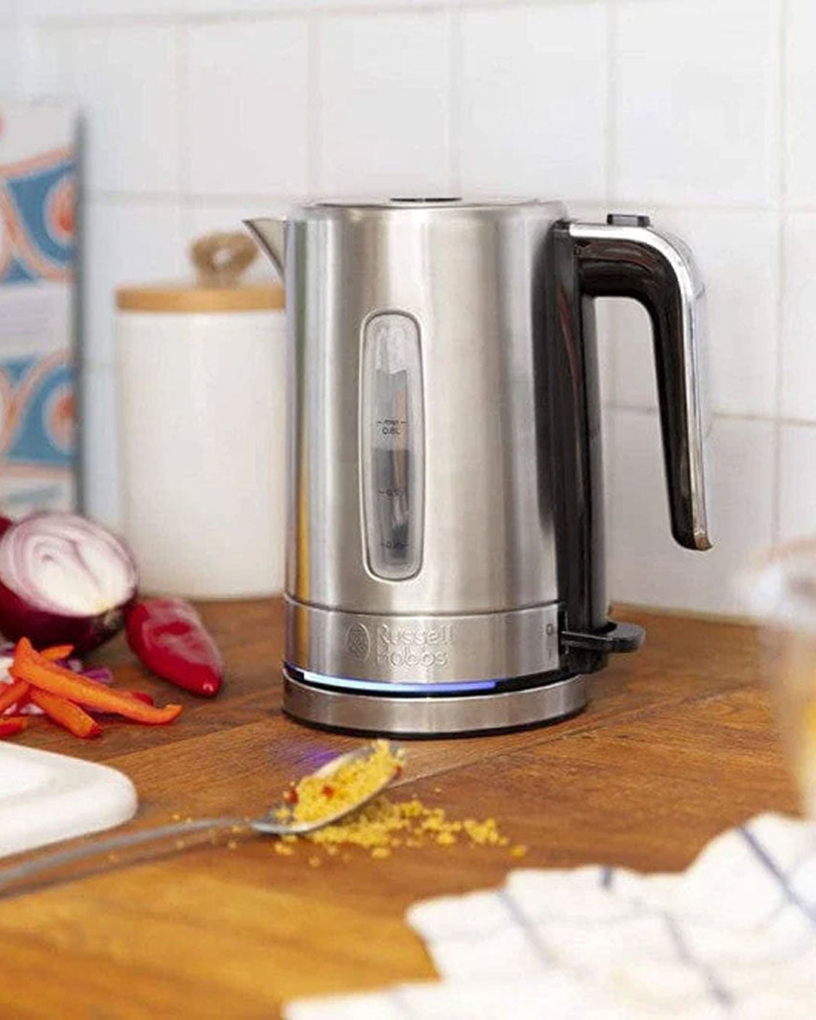 The Compact Home Brushed Kettle has a tranquil blue power light that illuminates when your kettle is on and boiling. This calming colour casts itself over your kitchen counter, letting you await your cuppa in complete peace.