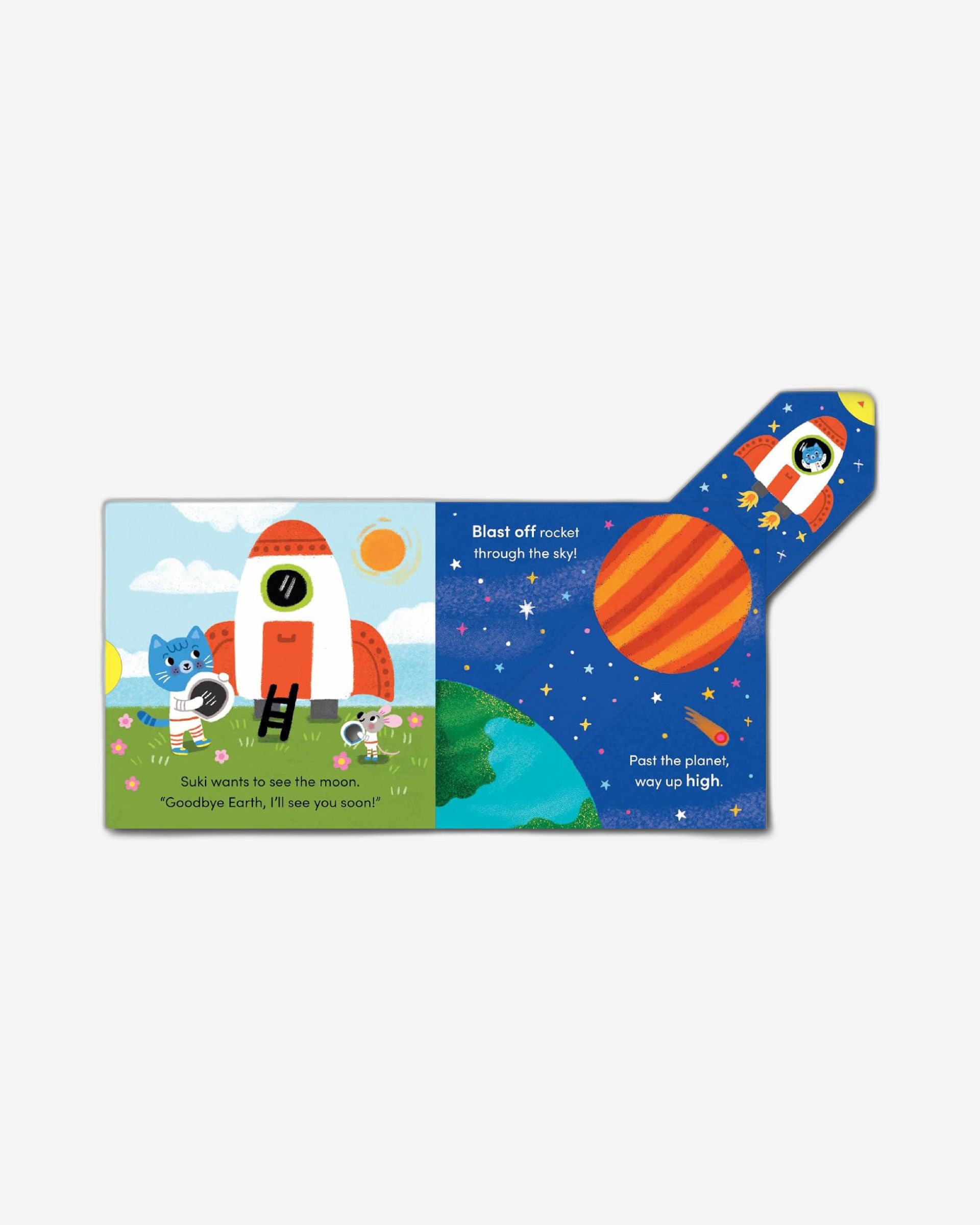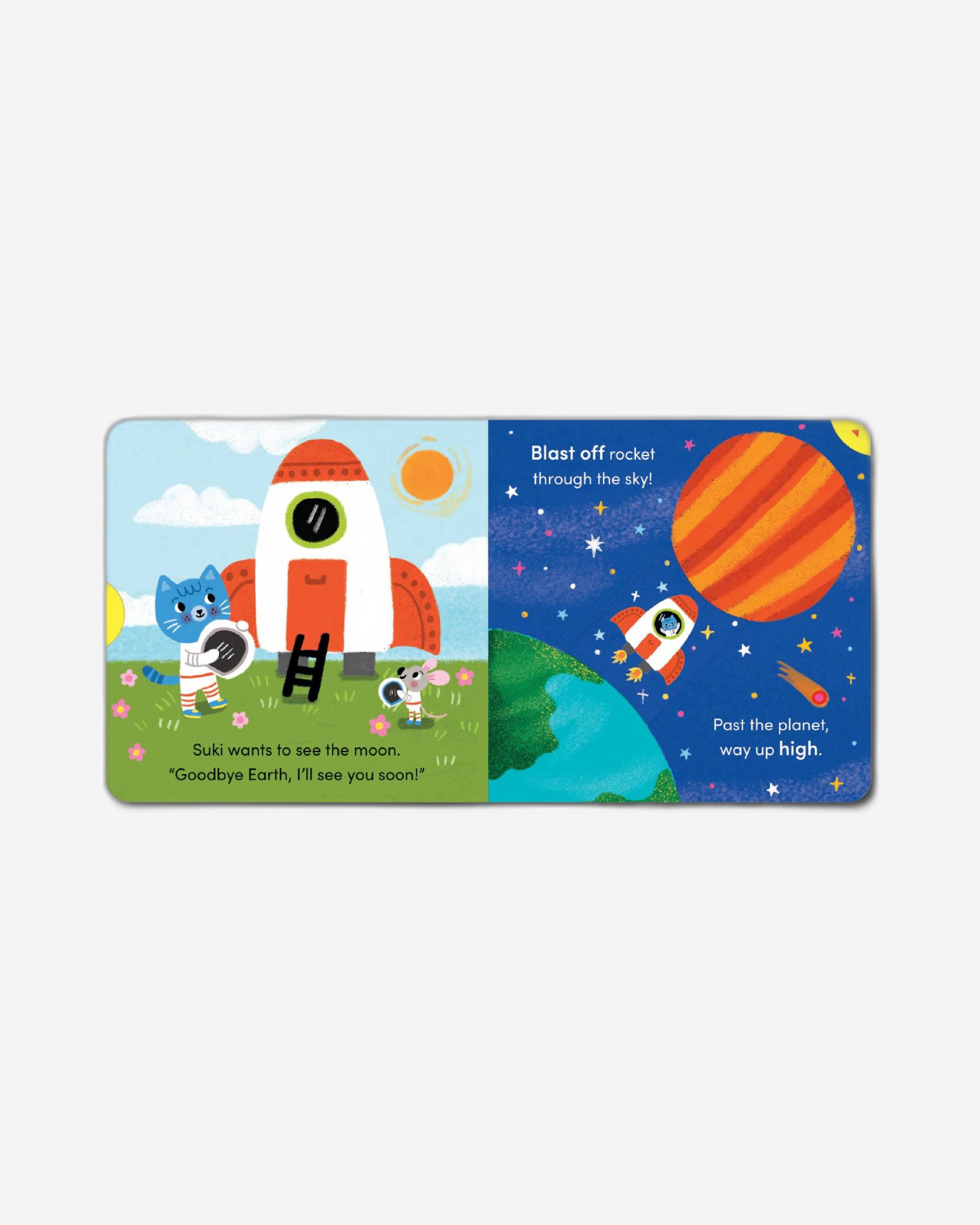 Who will Suki be today? Peek inside the box and play! Toddlers will love discovering who Suki Cat will become at the start of each story, before joining in with her dressing-up adventure – where she always saves the day! In Astronaut, Suki Cat puts on her spacesuit and zooms to the moon! But as she lands, she spots an alien in trouble. He’s stuck in his spaceship and needs help! Can Suki come to the rescue?