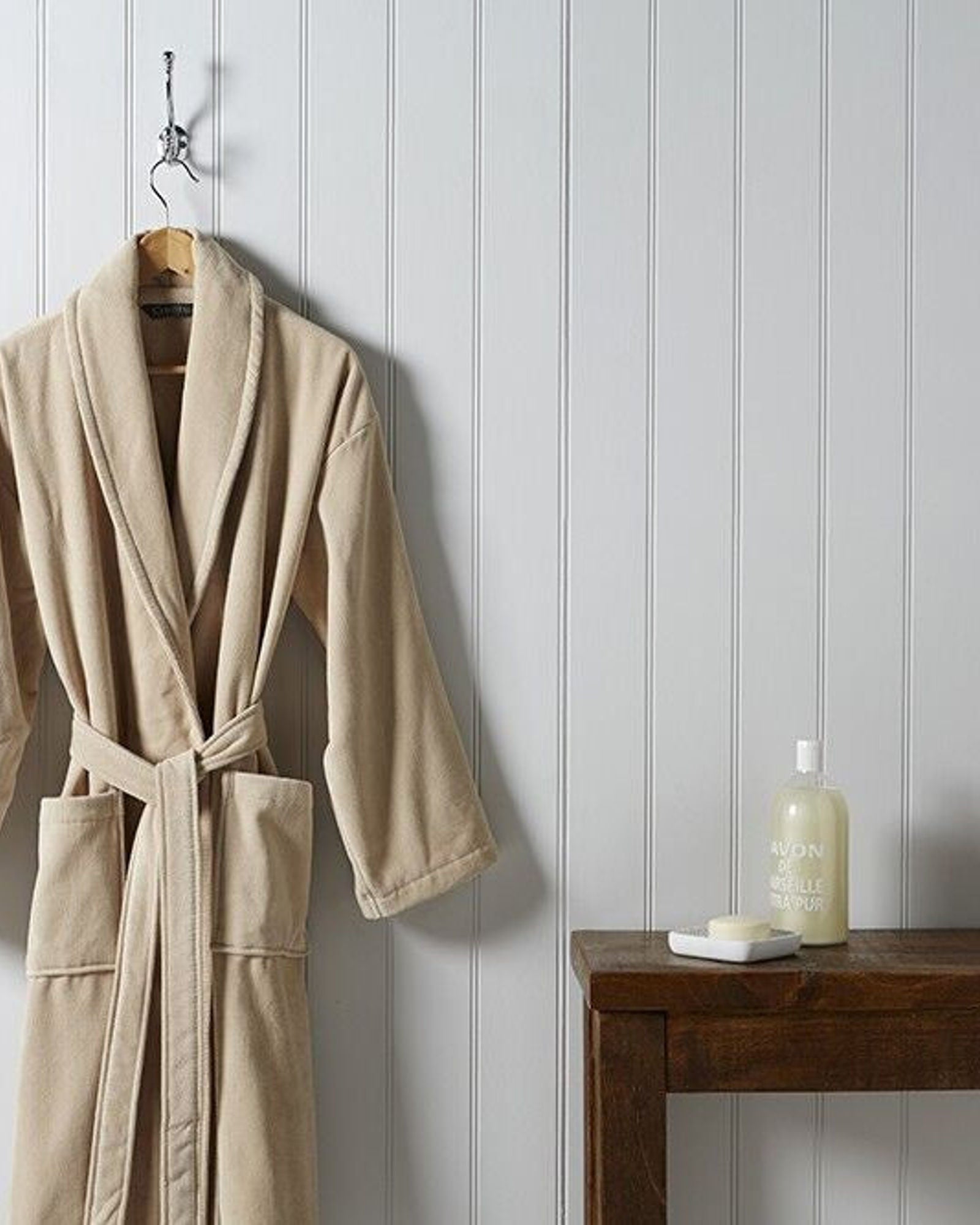 This unisex bath robe is effortlessly stylish and comfortable.