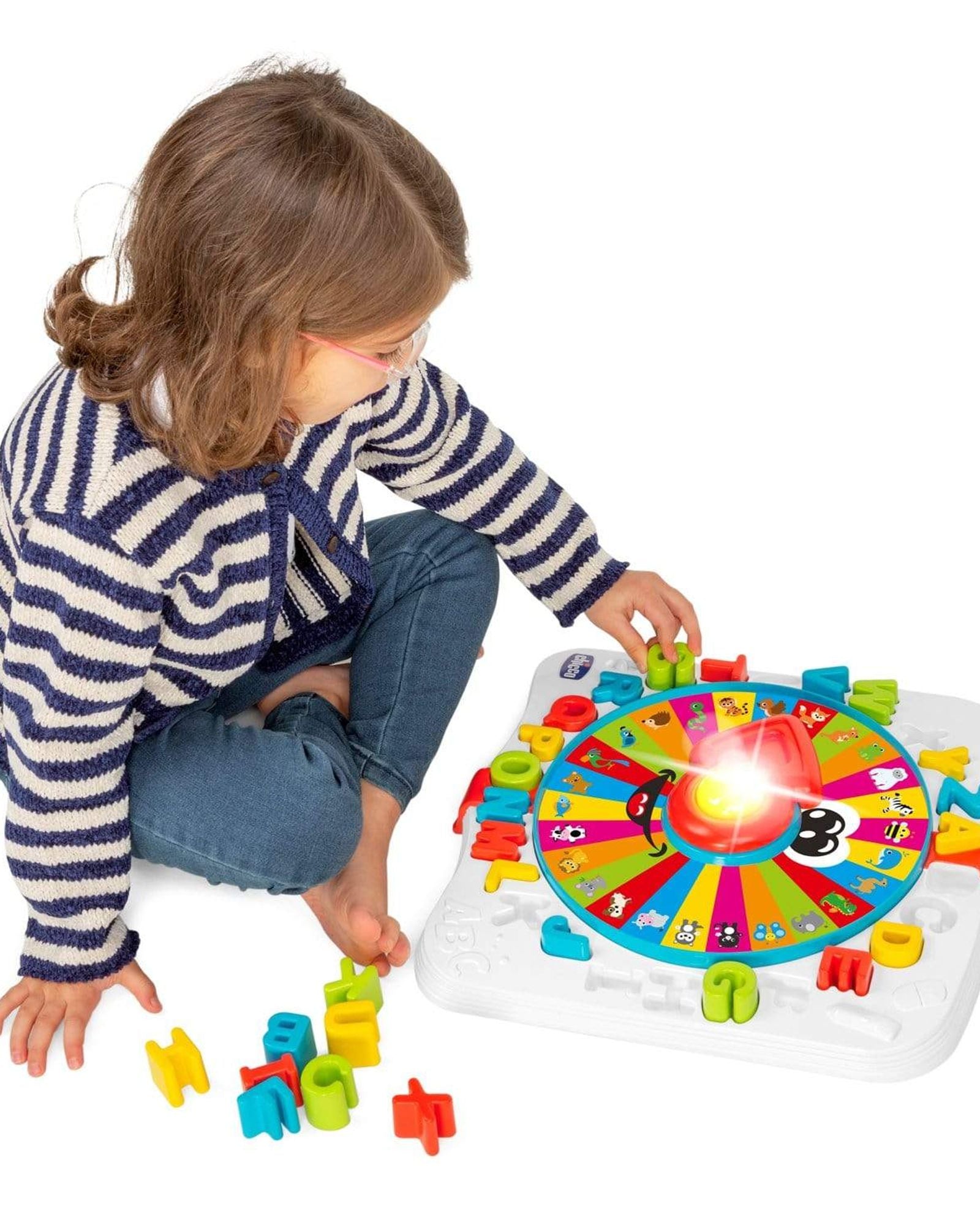 Baby Prof is the bilingual toy which helps the child in their first approach with alphabet and first words in Italian and in English. It has 3 game modes with 3 learning levels: Alphabet mode, Animal mode and Quiz mode; Inspired by the Montessori teaching method.