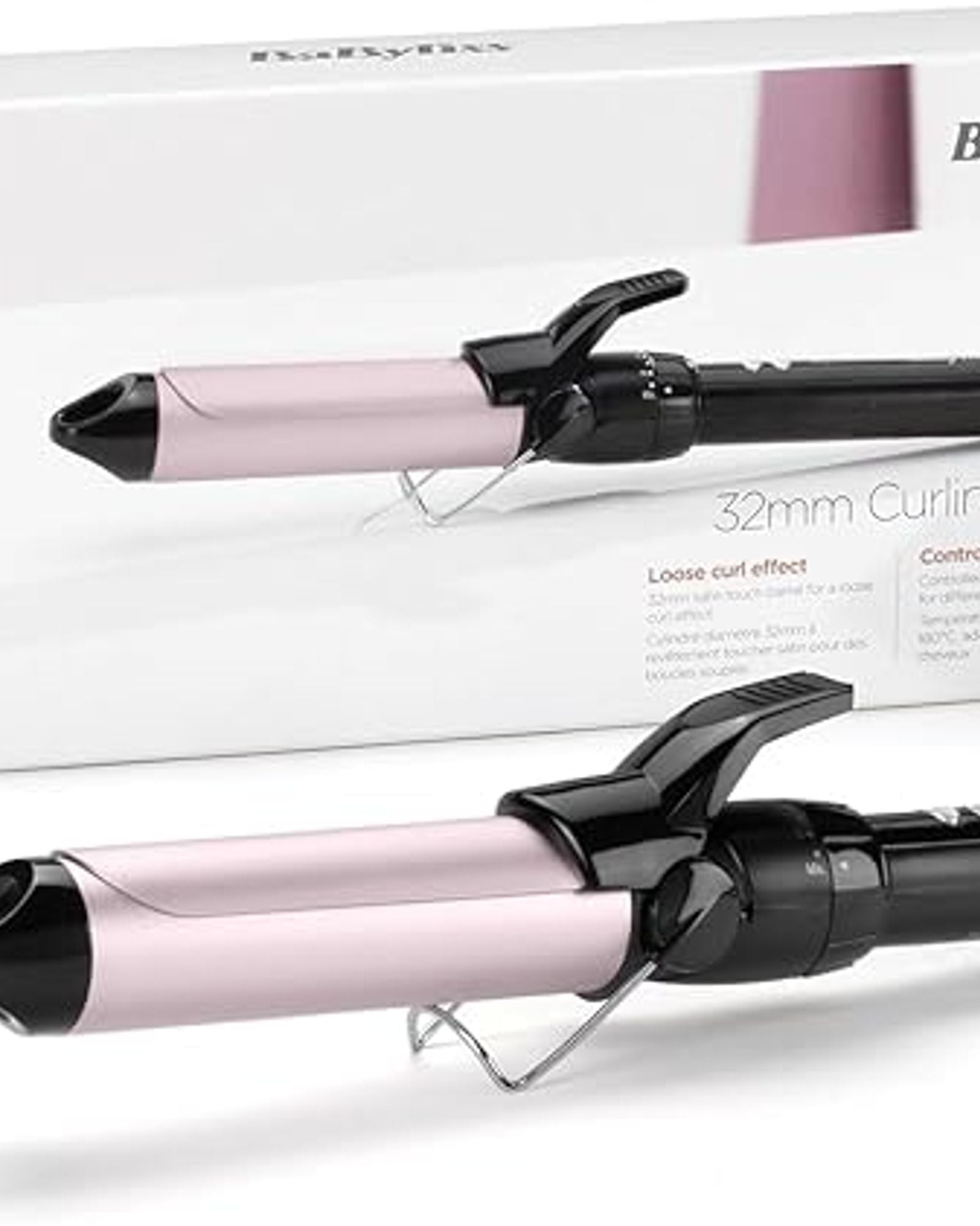 BaByliss Hair Curler 32mm Barrel for Wide Silky Curls Satin Touch Coating 10 Temperature Settings (110–180°C) Ionic Technology for Smooth and Shiny Hair - C332SDE