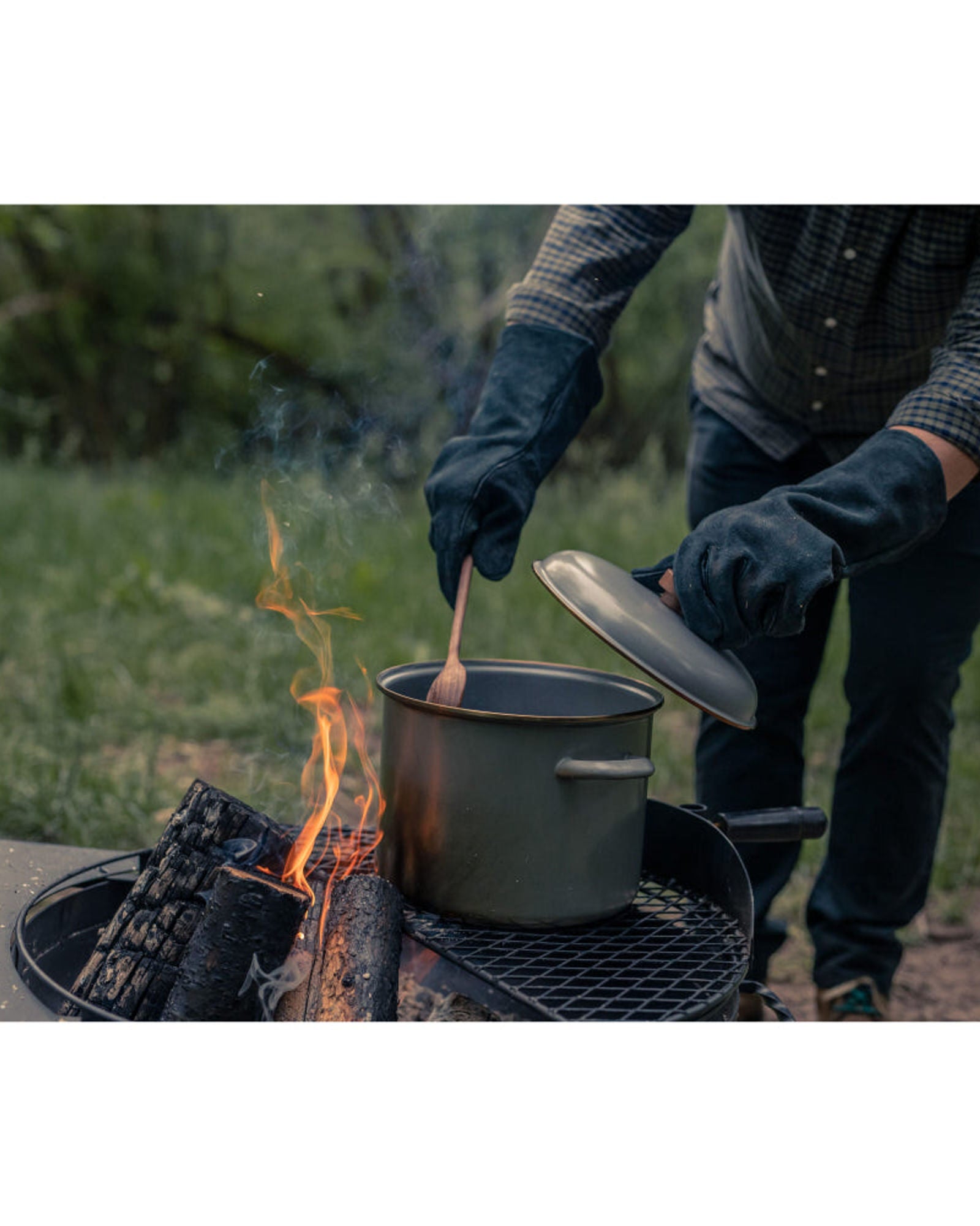 * Protective layers allows for longer working times when over fire or hot coals