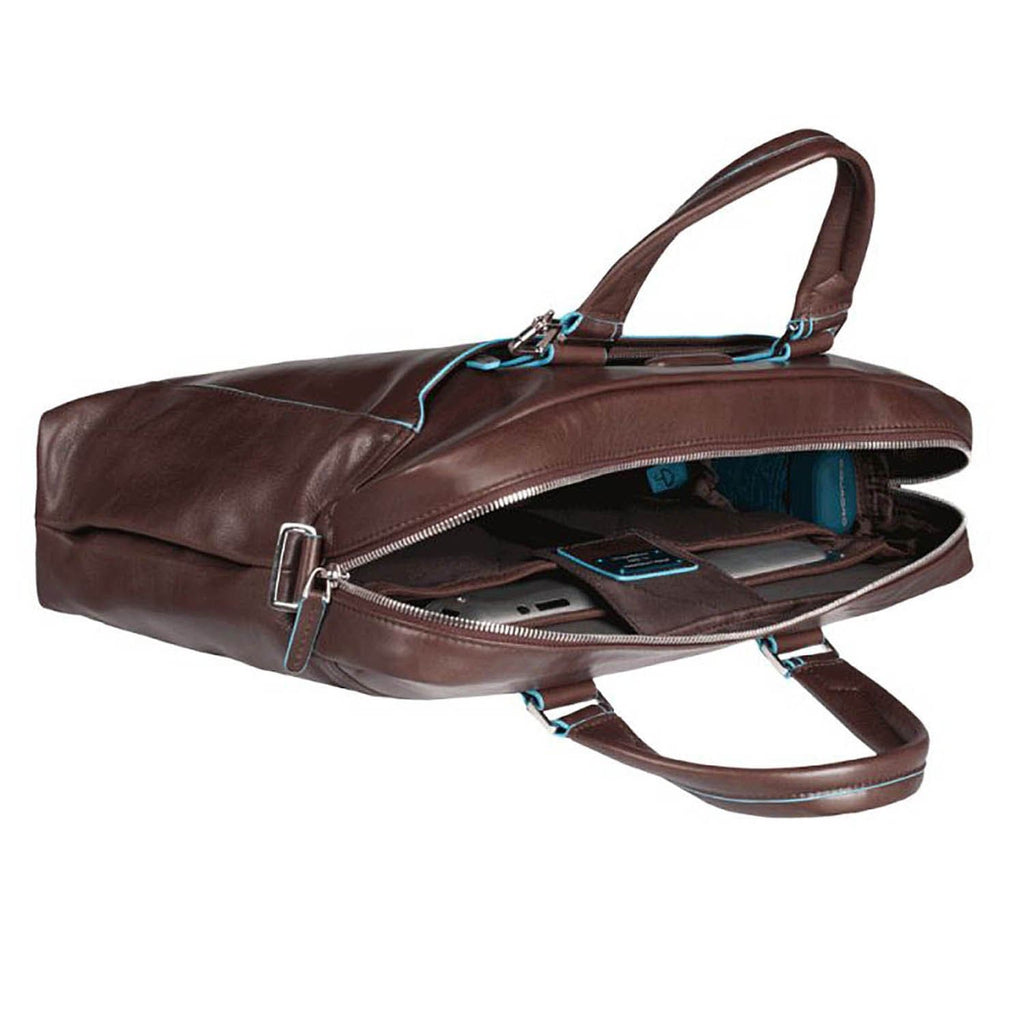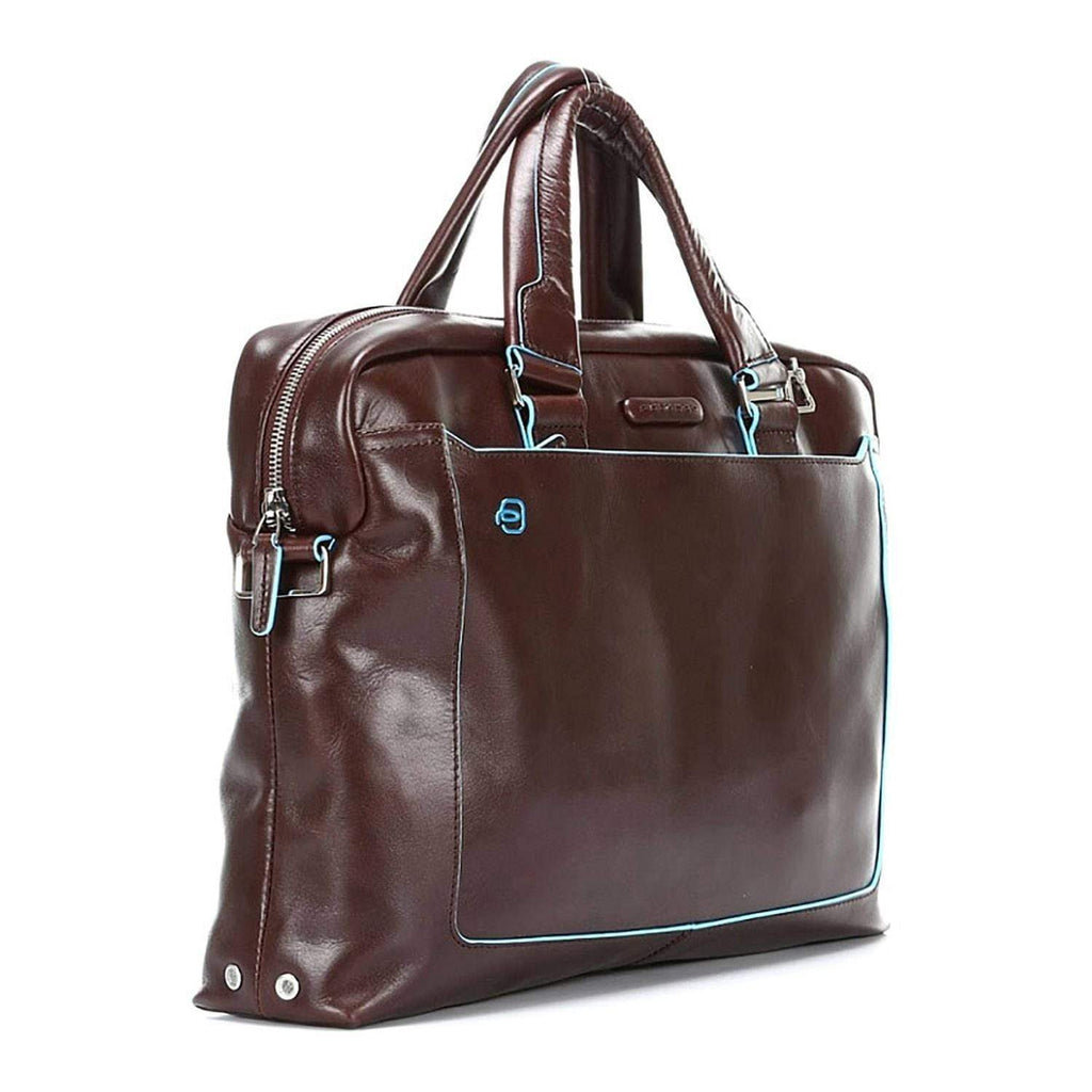 PIQUADRO BLUE SQUARE TWO HANDLE LEATHER BRIEFCASE - MAHOGANY - CA3335B2/MO