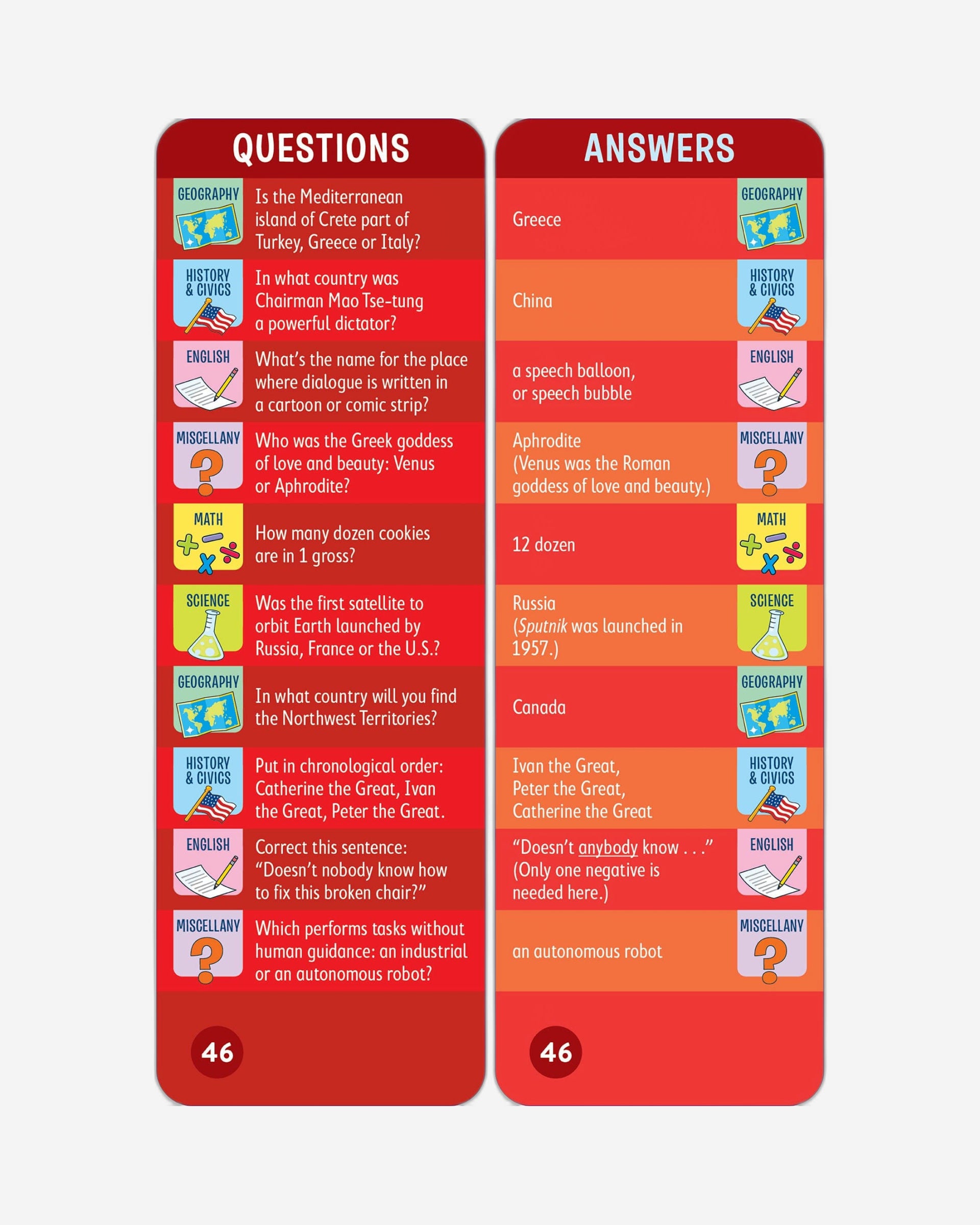 • Two full-color Q&A decks in a reusable flip-top storage box
