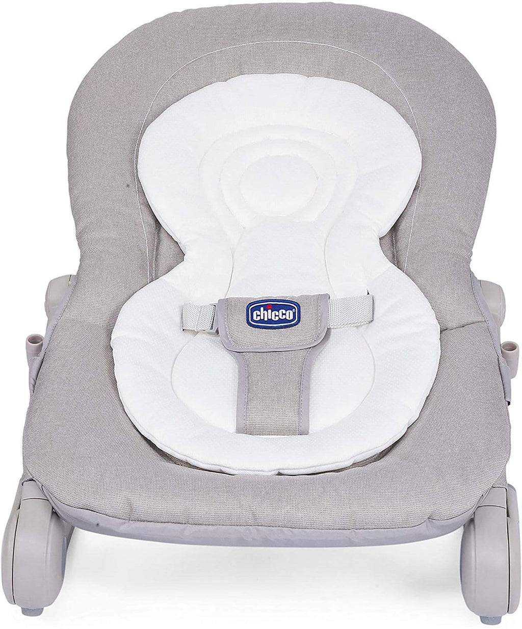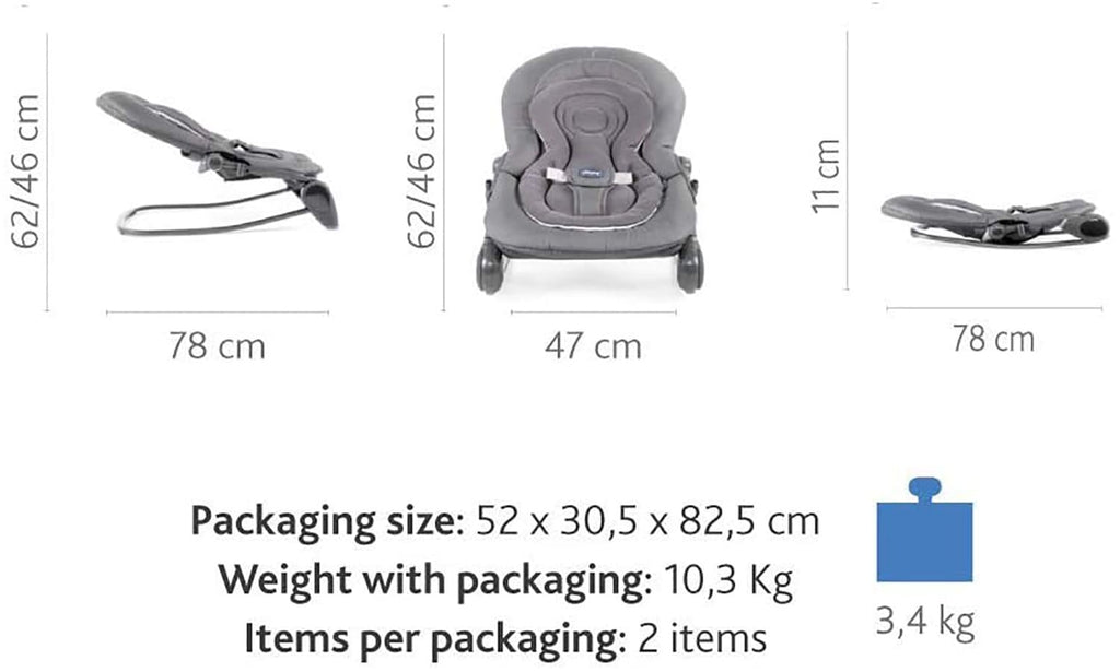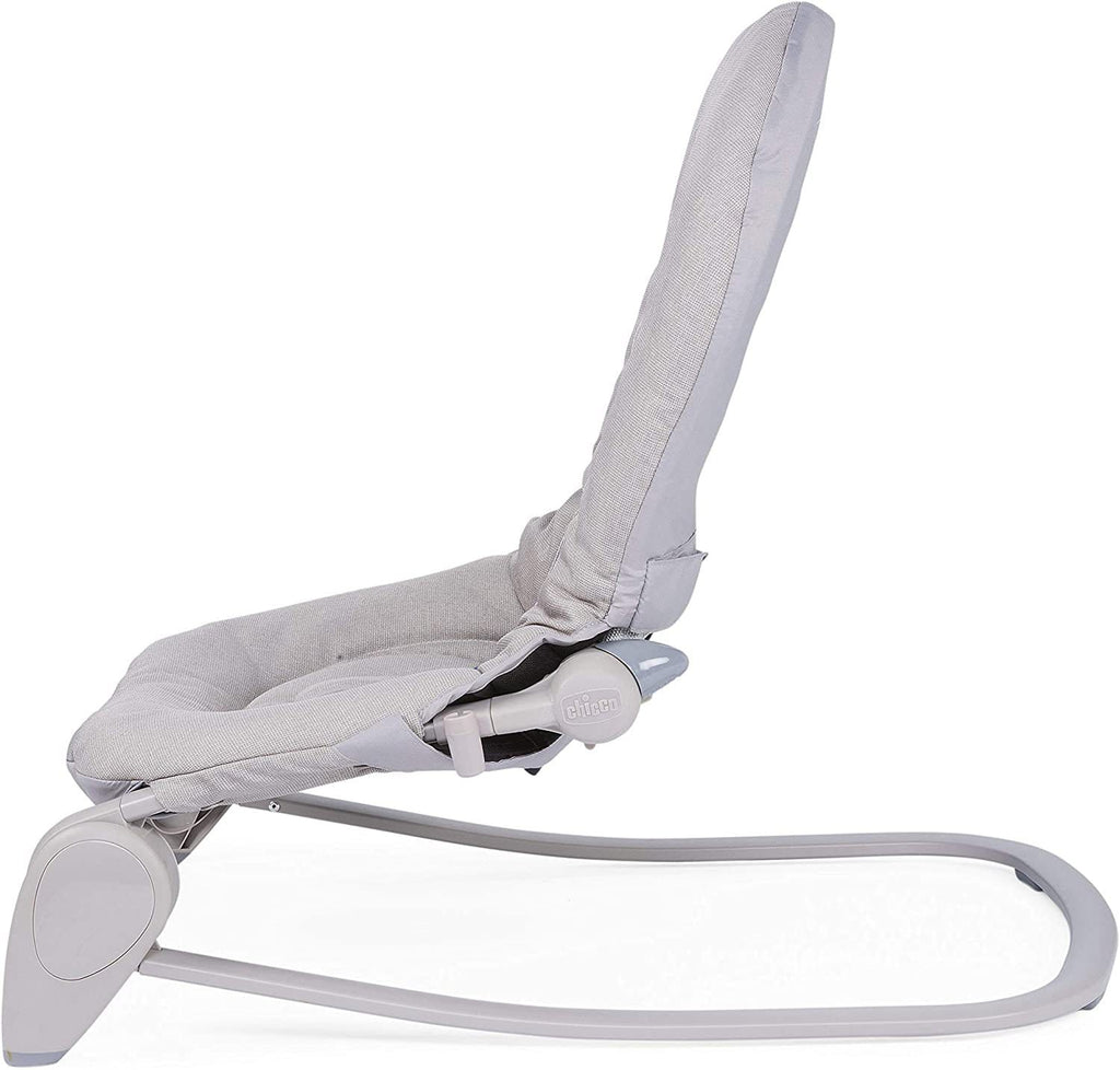 Comfortable rocker equipped with a toy bar with dangling fabric toys, welcoming little ones right from birth up to a maximum weight of 18 kg. Soft reducer: Hoopla is equipped with a soft, removable, and washable reducer. Comfort and growth, from 0 months to 18 kg: Hoopla can be used up to 6 months as a bouncer, and from when your baby is able to sit alone you can transform it into a soft seat for relaxation. Adjustable. Easy for you, comfortable for your baby! The backrest is adjustable in 4 different positions to adapt to the needs of the child. Thanks to the side buttons, the adjustment is easy and immediate. The bouncer can be used in a fixed or tilting position. Fun and cognitive development for your baby! Hoopla has a game bar, equipped with the exclusive and innovative SideLine system, which allows sliding the games along the arch to create new game scenarios. This system was developed in collaboration with a psychologist and contributes to the child's sensory, cognitive and psychomotor development. Compact and easy to fold: In a single gesture, thanks to the two front buttons. It can be easily carried or stored when not in use! Stimulating: Exclusive Sideline system to promote visual development, designed by a child psychologist.