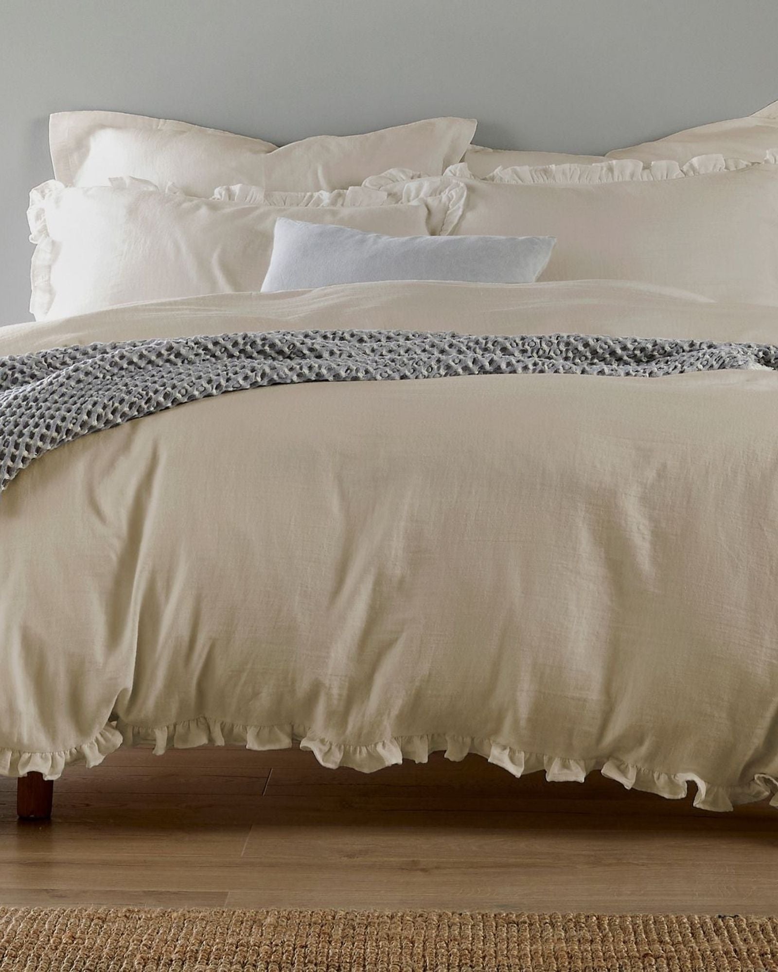 Christy Organic Cotton "Retreat Ruffle" Plain Dyed Duvet Covers in Oat (Beige)