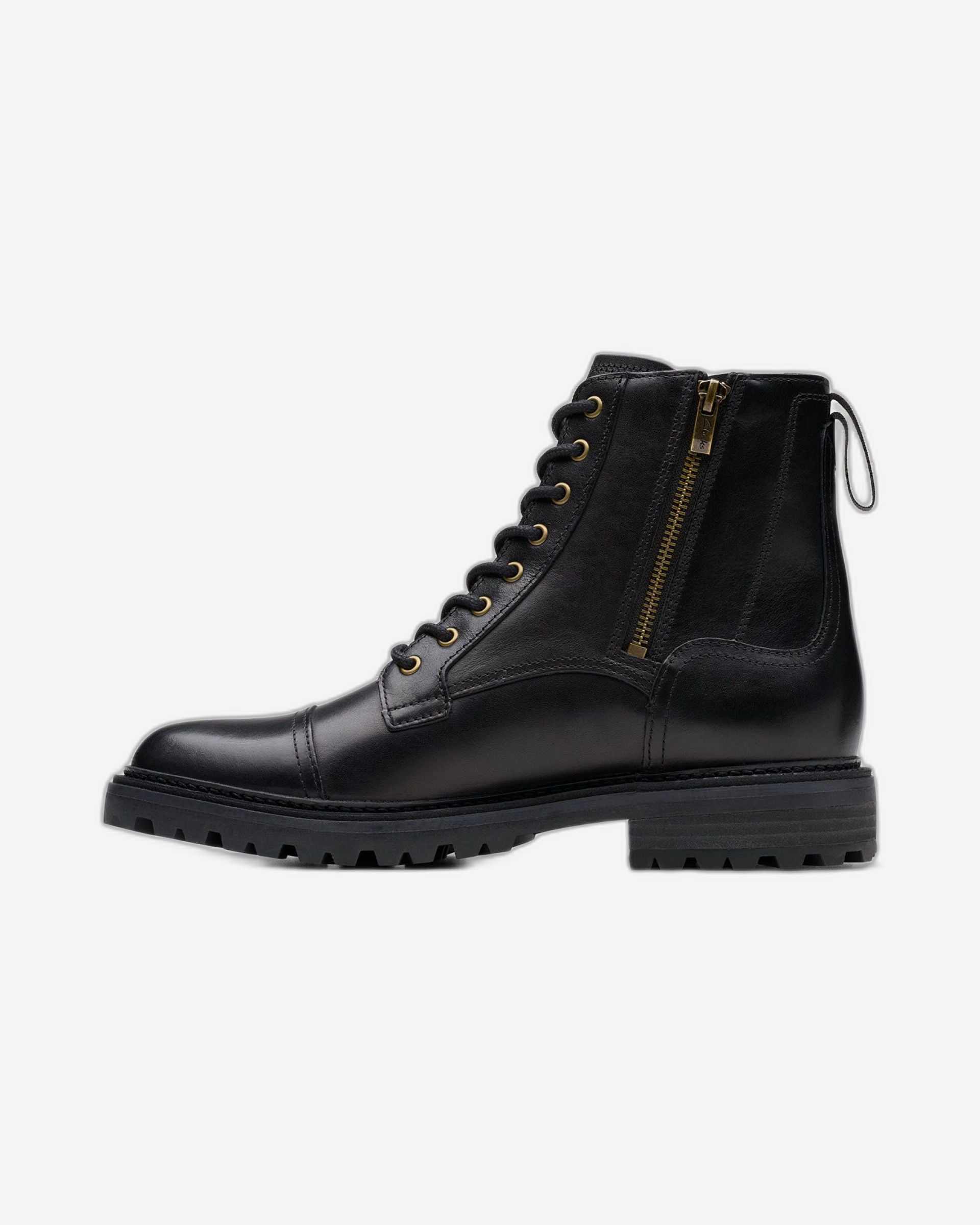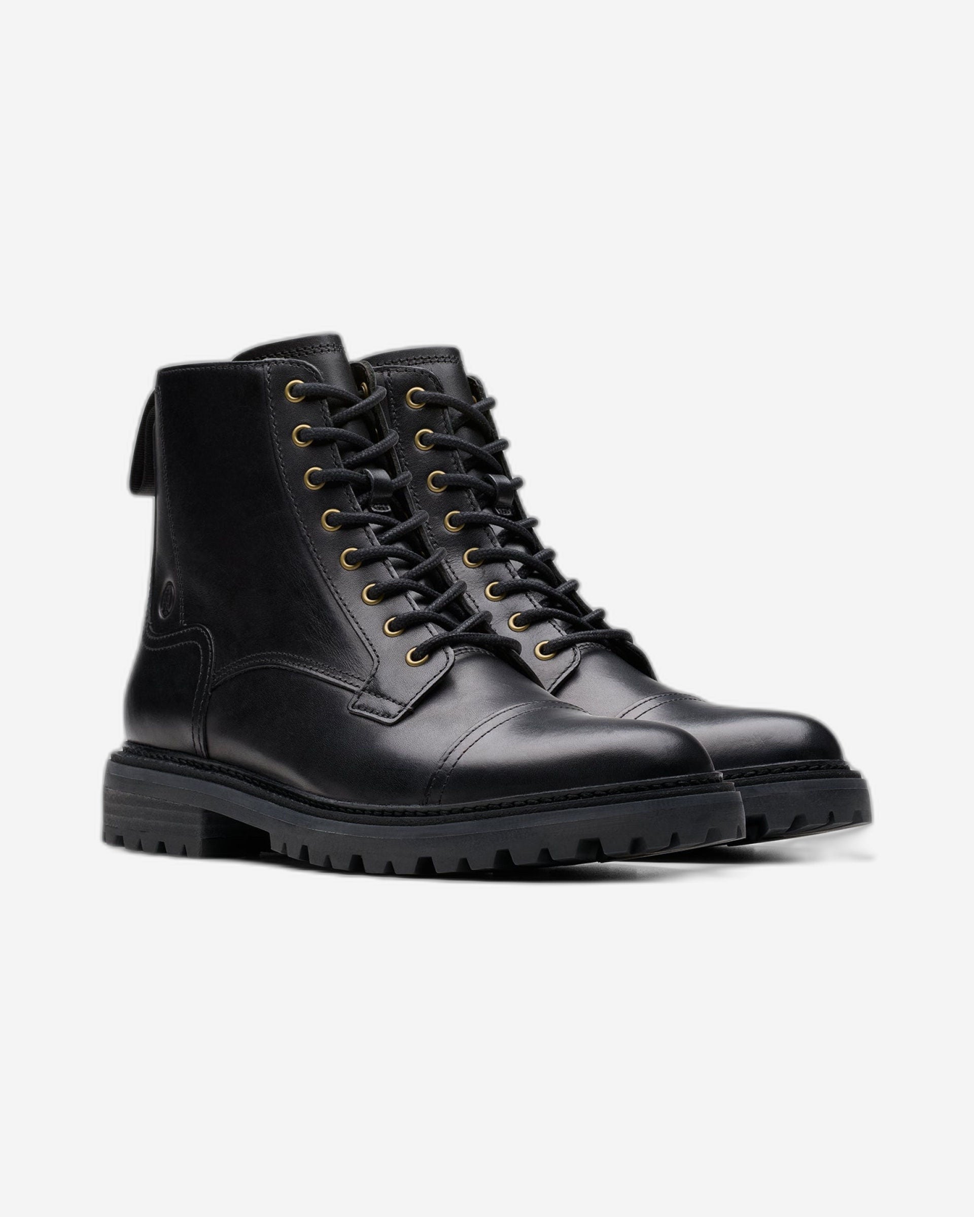 This season, we want boots that can really get stuck in. Pairs we can dress up or down and always look the part in! Set atop a Rock™ rubber sole for a comfy, stable walking experience, our Clarkridge Hi boot combines tough black leather uppers with a deceptively light construction to take you from countryside pub to city stroll, all underpinned by comfort you can count on. Channeling an archival aesthetic with its metal eyelets and cap toe, it’s our answer to effortless, everday styling.