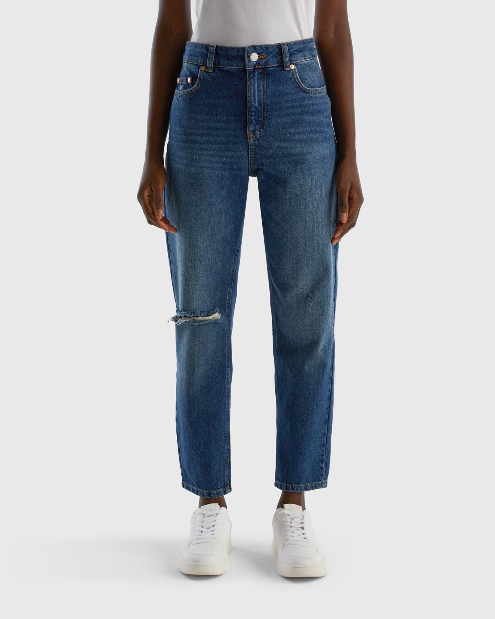 Model: INGRID; 100% cotton denim; Belt loops at waist; Yoke at the back; Nickel-free metal parts