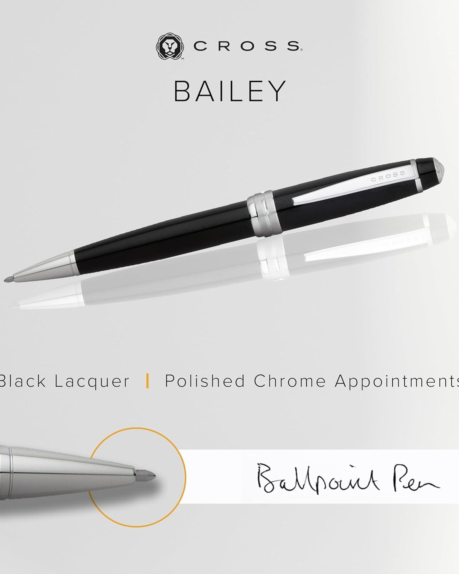 Cross Bailey™ Black Lacquer With Polished Chrome Appointments Ballpoint Pen - AT0452-7