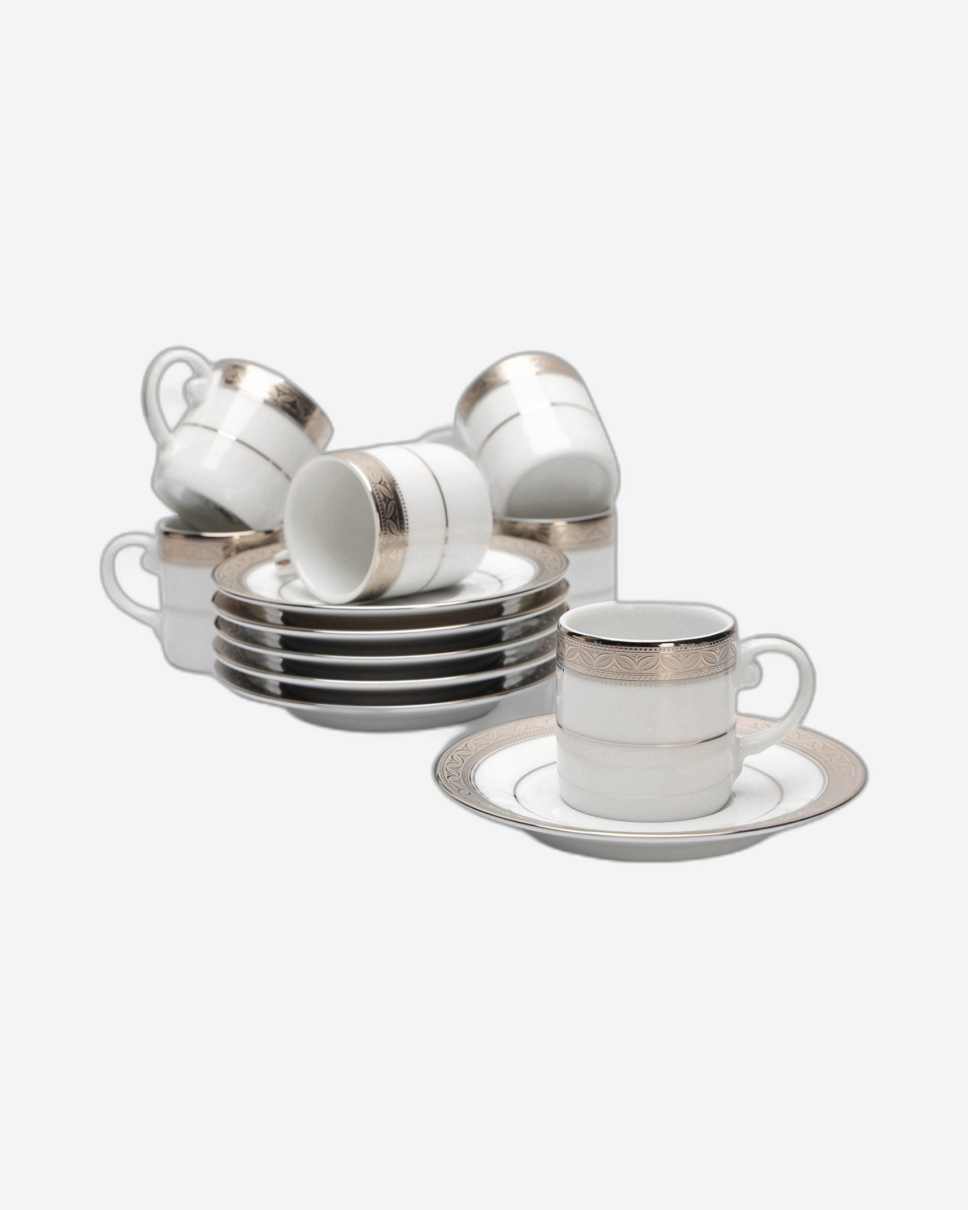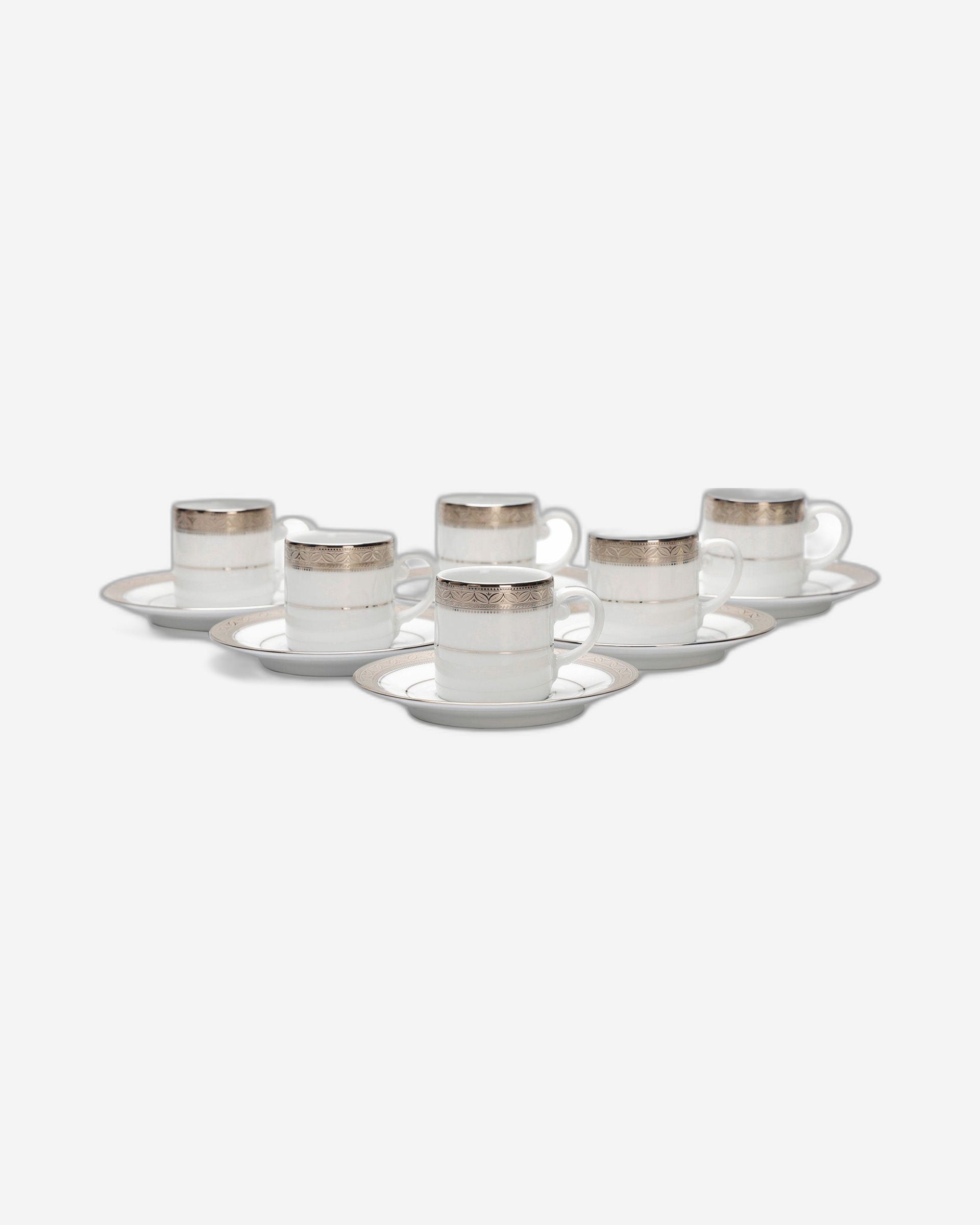 • Made using a combination of Japanese and German technologies The Dankotuwa Espresso Set is made of high-quality porcelain for long-lasting use. Soft white with silver motifs. It quickly adds a sense of luxury to your tea table and is sure amaze your guests. The set serves 6 people, and the cups are made of premium porcelain, which provides outstanding longevity.