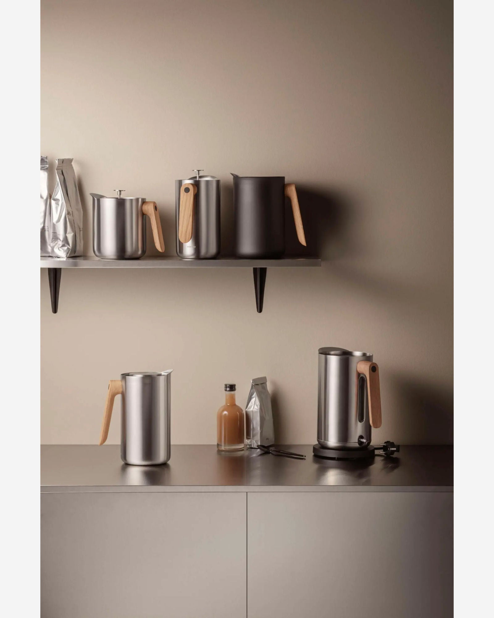Keep your drinks hot or cold in style with the Eva Solo Vacuum Jug from the Nordic Kitchen collection. Featuring a sleek black finish and a natural oak handle, this 1.0L insulated jug offers durable construction and drip-free pouring—perfect for everyday use.