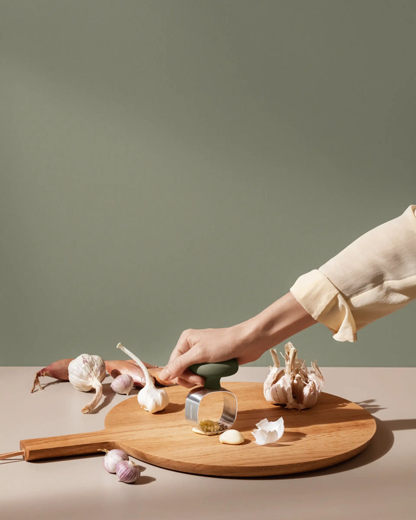•Easily mashes garlic cloves for cooking.