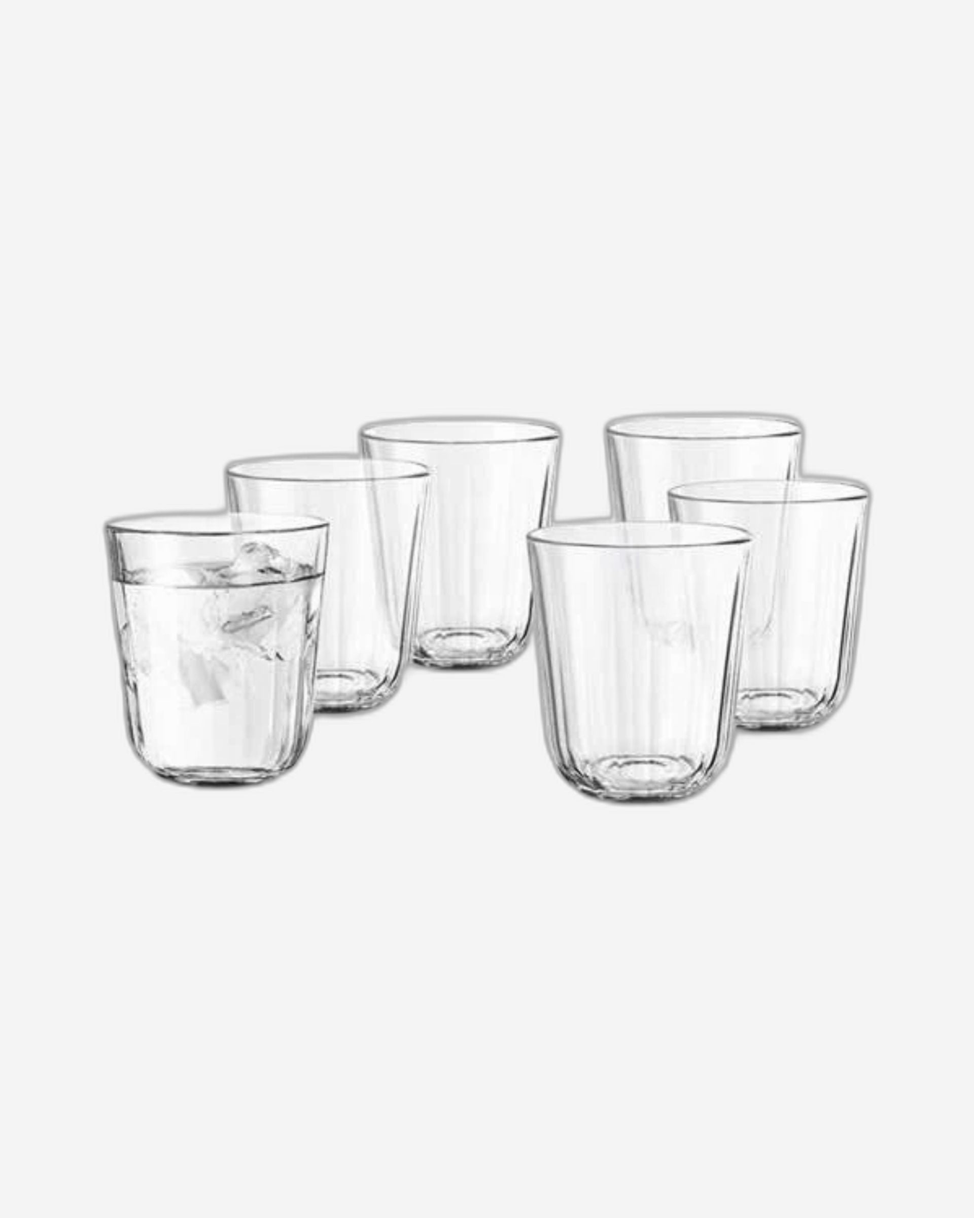 The Eva Solo 567433 Facet Tumblers are a set of six elegantly faceted drinking glasses, each with a capacity of 27 centilitres (?270 ml). Made from tempered (hardened) glass, they feature a distinctive faceted texture at the base that catches the light beautifully. They offer versatile use for hot and cold beverages in everyday settings or when entertaining, combining Scandinavian design and practicality.