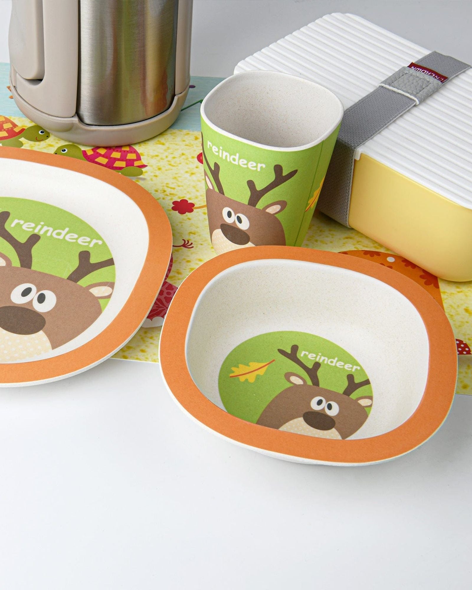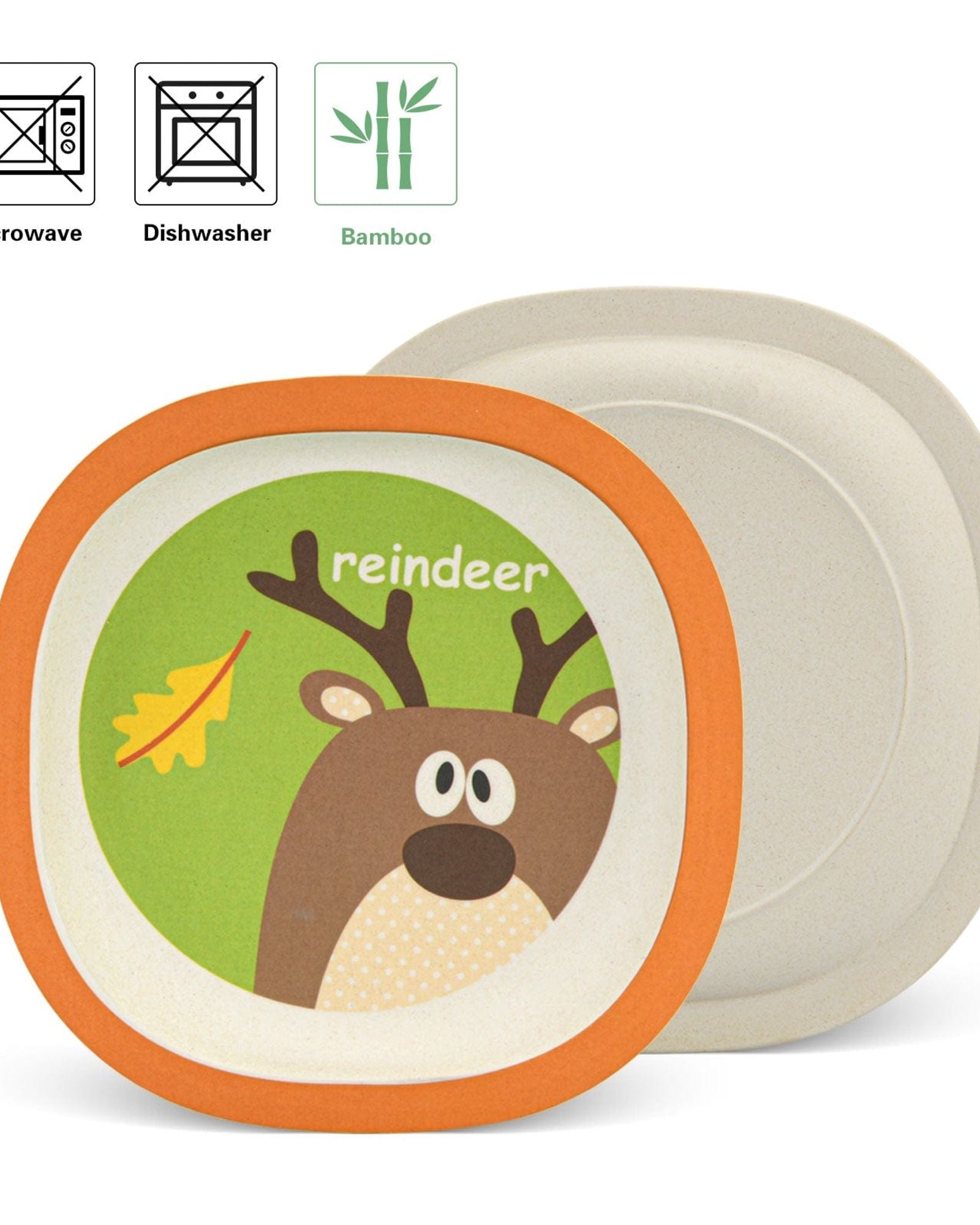 Fissman 3-Piece Bamboo Reindeer Kids Dinner Set Multicolour 19.5x19.5x1.8cm